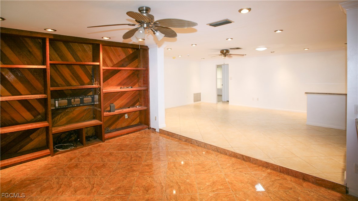 The open living areas flow seamlessly to the outdoor oasis, where a screened-in private pool creates the perfect setting for year-round enjoyment. A private sauna room adds a rare wellness feature, providing a spa-like retreat right at home.