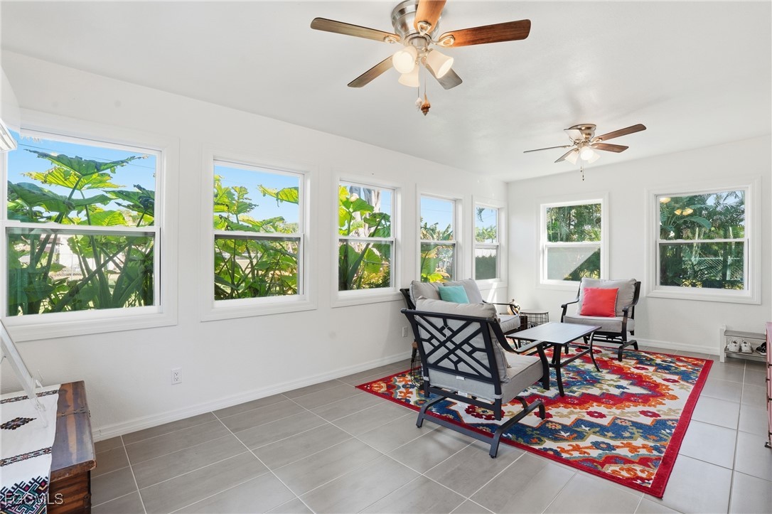 Step outside to enjoy the private backyard framed by mature tropical foliage, offering both beauty and privacy. Additional features include a one-car garage, screened entry, ceiling fans throughout, and meticulous upkeep that truly shows pride of ownership.