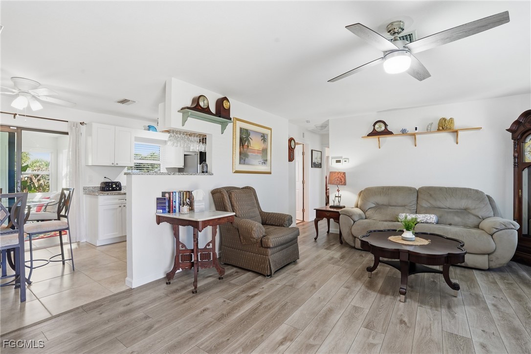 Inside, you’ll find a light-filled, open layout with updated wood-look flooring throughout the main living areas and a neutral color palette that feels fresh and move-in ready. The spacious living room offers plenty of room to relax or entertain, while large windows bring in abundant natural light.