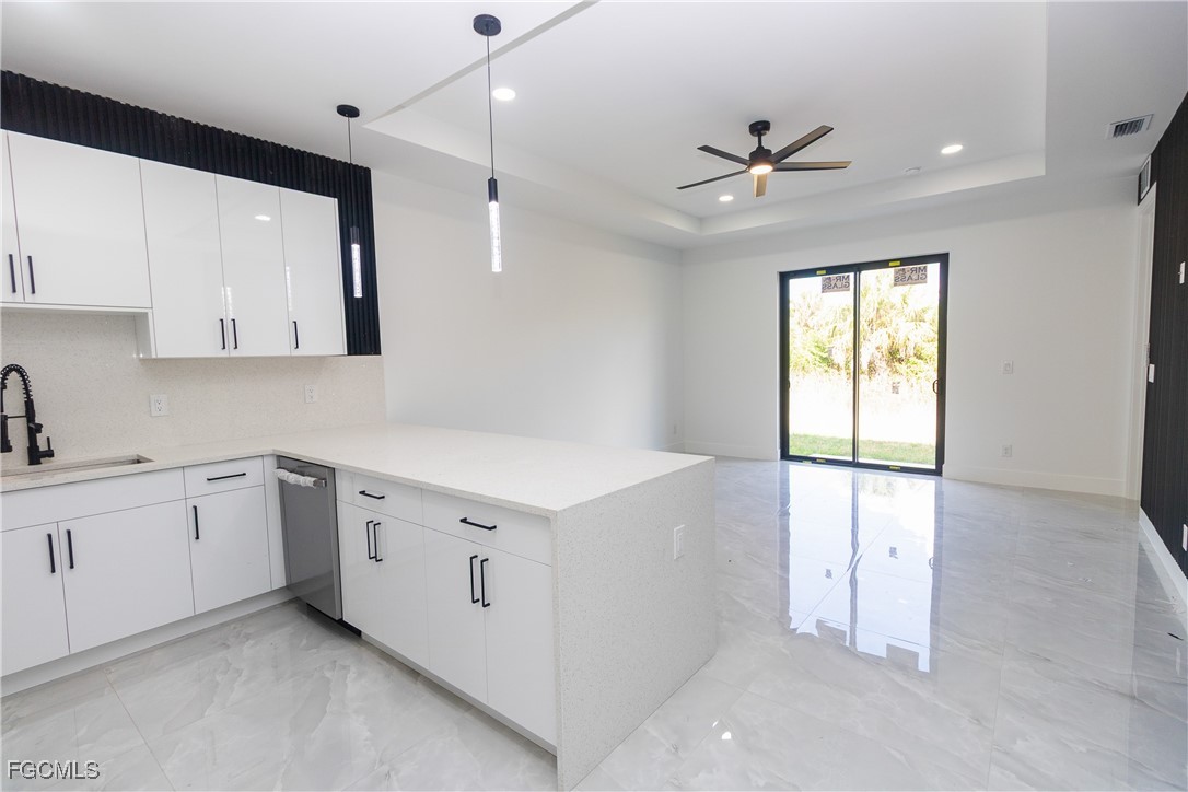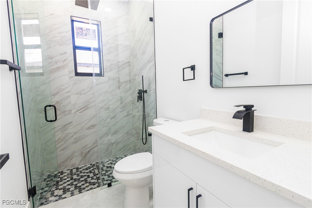 Brand New Construction Duplex in Lehigh Acres! This modern masterpiece features 3 bedrooms and 2 bathrooms, blending high-end aesthetics with functional design. The stunning gourmet kitchen boasts white quartz waterfall countertops, high-gloss cabinetry, and premium stainless steel appliances. Enjoy an open-concept layout with large-format porcelain tile throughout! The spa-inspired bathrooms feature floor-to-ceiling marble-look tile, frameless glass showers, and matte black designer fixtures. Sleek curb appeal with charcoal garage doors, tropical landscaping, and a monochromatic finish. Washer and dryer included. Schedule your showing today!
