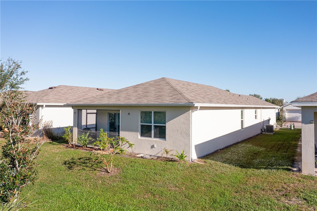 Come see this beautiful 3 bedroom, 2 bath home located in one of the newer gated communities - Calusa Creek. This home has a fantastic open floor plan, which is perfect for entertaining, but gives you the privacy you need since the primary bedroom is located at the rear of the home overlooking the lake, separate from the other bedrooms. Upgrades galore on this beauty! There is tile throughout the main living areas, real wood cabinets in the kitchen, designer wall paper in the bedroom and 2 screened lanais, which allows you to take full advantage of the beautiful Florida weather and enjoy a fantastic cross breeze. The private rear lanai overlooks a small pond and is just the perfect size for relaxing and watching the wildlife that surrounds the pond. And one of the best features is the property is NOT in a flood zone, but it does have hurricane panels for your piece of mind. Calusa Creek is gated community that features sidewalks, streetlights, walking trails, a gazebo, a community pool and a kids play area and has LOW HOA fees! Please make your appointment today!