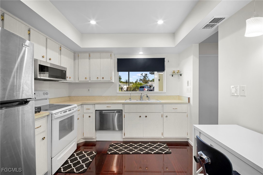 Leisure Estates - the name says it all. A well-kept secret in a prime location! Nestled on a quiet cul-de-sac, this charming 2-bedroom, 2-bath home offers comfort, convenience, and peace of mind. The home features a garage and a screened patio—perfect for enjoying Florida living year-round. Located in Leisure Estates, a pet-friendly community that is not in a flood zone, this property boasts major updates including a new A/C (2023), a brand-new roof (2024), and storm shutters for added security and protection during seasonal weather—or when you head north for the summer. Residents of Leisure Estates enjoy green space, a community pool with cabana, and shuffleboard courts. Ideally situated near shopping, tennis and pickleball facilities, hospitals, and the jetport, this home offers both tranquility and convenience. Take the time to discover all that this welcoming community has to offer.