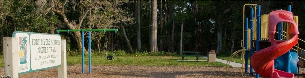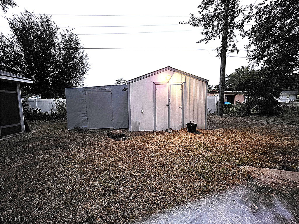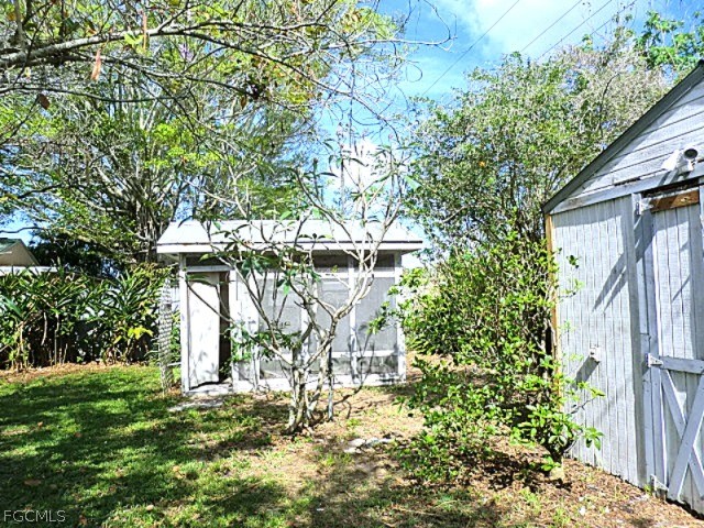 EXTRA...EXTRA... EXTRA... Extra optional land available. Extra family room. Extra screen porch (front and back porches). Extra storage sheds and workshop. Newer roof. Remodeled with upgrades. Spacious free flowing floorplan. 3 Bedrooms (easily fits King size bed with plenty of room to spare in the master bedroom). 2 full bathrooms with modern mirror medicine cabinets with 2 in the bathroom which one has lady's hanging jewelry area. All new very UNIQUE ceiling fans with changing light color and very quiet. European style door levers throughout. Dining area besides family room handy to kitchen. Large screen porch with Bar-B-Q area, 2 utility rooms (one inside home with washer/dryer hookups plus room for freezer; and one outside for lawn mower and other storage). AND a separate workshop building in addition to two other outdoor storage areas: one is a bird aviary that can be used for storage. GREAT storage for everyone to have their own area. Chain link fencing (partial), ceramic tile floors in this split floorplan home with real large master bedroom. Besides the regular 80' lot with the house (see red marked area on aerial), you have the option of purchasing the adjoining two lots. GREAT area for children to visit close by parks. Just down the street from the community Davis Boat Ramp plus paddle craft, dog area. Fort Myers Shores Nature Trail Park is on 5th St. Olga Park & Community Center has basketball, shuffleboard and tennis courts plus playground. Close to bus line. Shopping so close you can walk to it. You will be totally SURPRISED when you go inside and experience how large it is. A real fooler from the outside. Private financing available with hefty down payment. Possible exchange for vehicles or other real estate.