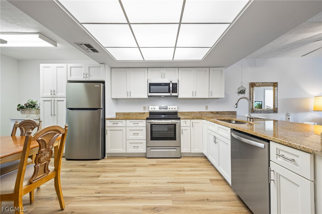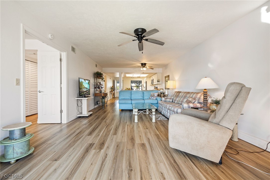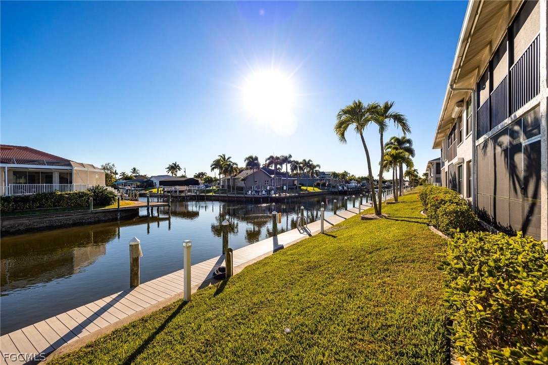 Welcome to this extremely well maintained, waterfront community featuring only 10 units per building, offering a quiet and close-knit association. This desirable FIRST-FLOOR 2-bedroom, 2-bath residence is move-in ready and sold TURN-KEY. The unit has been thoughtfully upgraded throughout, including a renovated kitchen with new granite countertops, new cabinetry with additional storage, and new Frigidaire appliances. Additional improvements include 5-inch baseboards, vinyl flooring throughout, fresh interior paint, replaced interior doors, upgraded closet systems, new bathroom vanities with mirrors, new toilets, new blinds, new ceiling fans, a new water heater, and a new AC system with warranty. Electric hurricane shutters provide added convenience and peace of mind. Enjoy tranquil water views from your living space which is perfect for morning coffee or evening wine all while watching boats pass by. Boat owners will appreciate the community dock available exclusively to residents. Community amenities include a waterfront pool, spa, gazebo, and grilling area. All exterior maintenance is handled by the association. No rentals are permitted, ensuring a stable and owner-occupied environment. Small pets are welcome. This is Florida living at its best—schedule your showing today! Flood insurance is included in the HOA monthly dues.