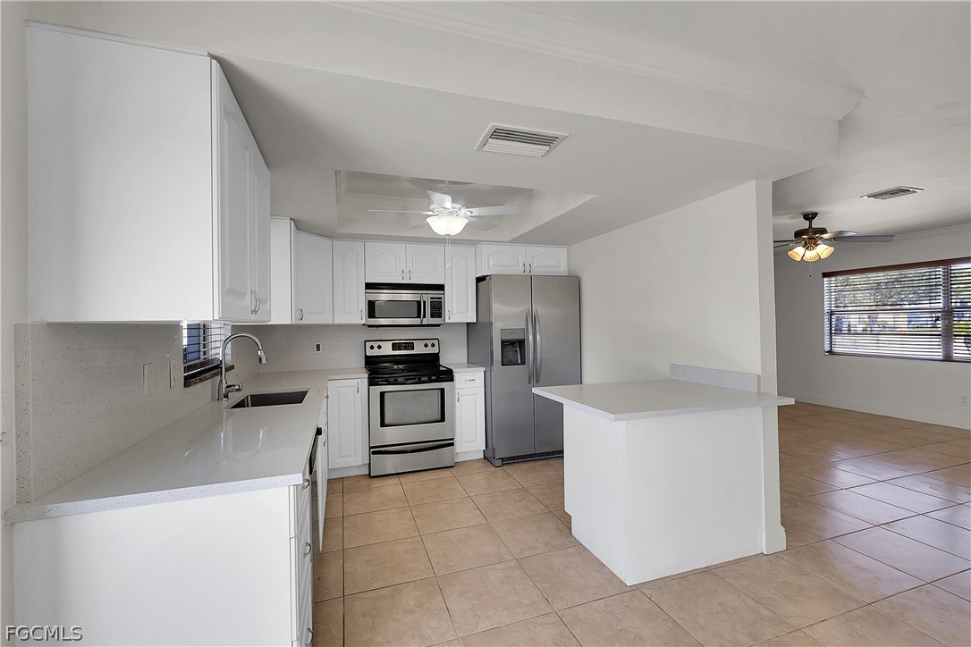 Welcome to Southwest Cape Coral—a well-kept 3-bedroom, 2-bath single-family home in a location buyers love, just 1/2 miles, or a 2-minute drive to Cape Coral High School! Inside, you’ll find tile flooring throughout plus crown molding that adds a clean, finished look. The updated kitchen features new countertops and opens easily to the main living and dining areas—perfect for everyday routines and casual get-togethers. Step out back to a fully fenced backyard, giving you space for pets, play, gardening, or weekend BBQs. Big-ticket updates add extra peace of mind: Roof replaced in 2023 and a new 2026 hot water heater. If you’ve been searching homes for sale in SW Cape Coral with low-maintenance finishes, practical upgrades, and a convenient school-close location, put this one on your must-see list.