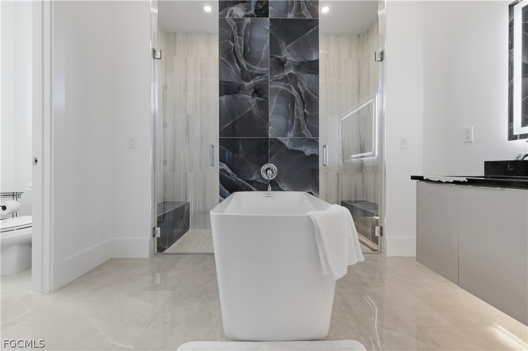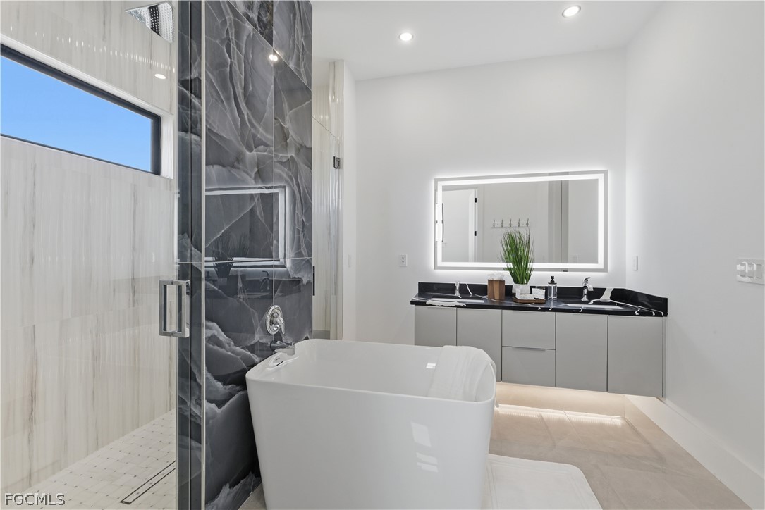The primary suite is a true sanctuary, complete w/a massive soaking tub & a spacious walk-in shower adorned with stunning tile work - bringing spa-level luxury into your daily routine.