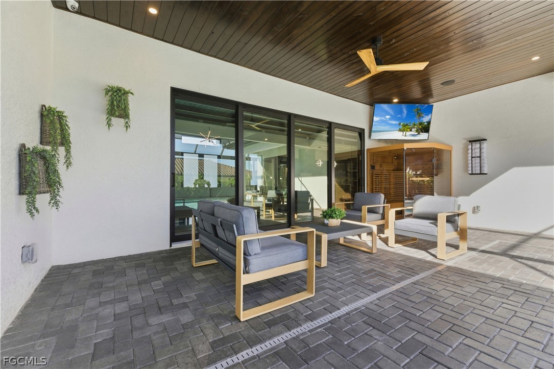 Step into the lanai & you’ll discover one of this home’s most impressive features: a gorgeous built-in sauna with sleek glass doors. Perfectly integrated into the outdoor living space, this private wellness retreat allows you to unwind, detox, improve circulation, ease muscle tension, and reduce stress — all from the comfort of your own home. Imagine stepping from your sauna directly into your pool for the ultimate hot-and-cold therapy experience.