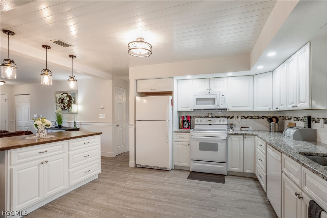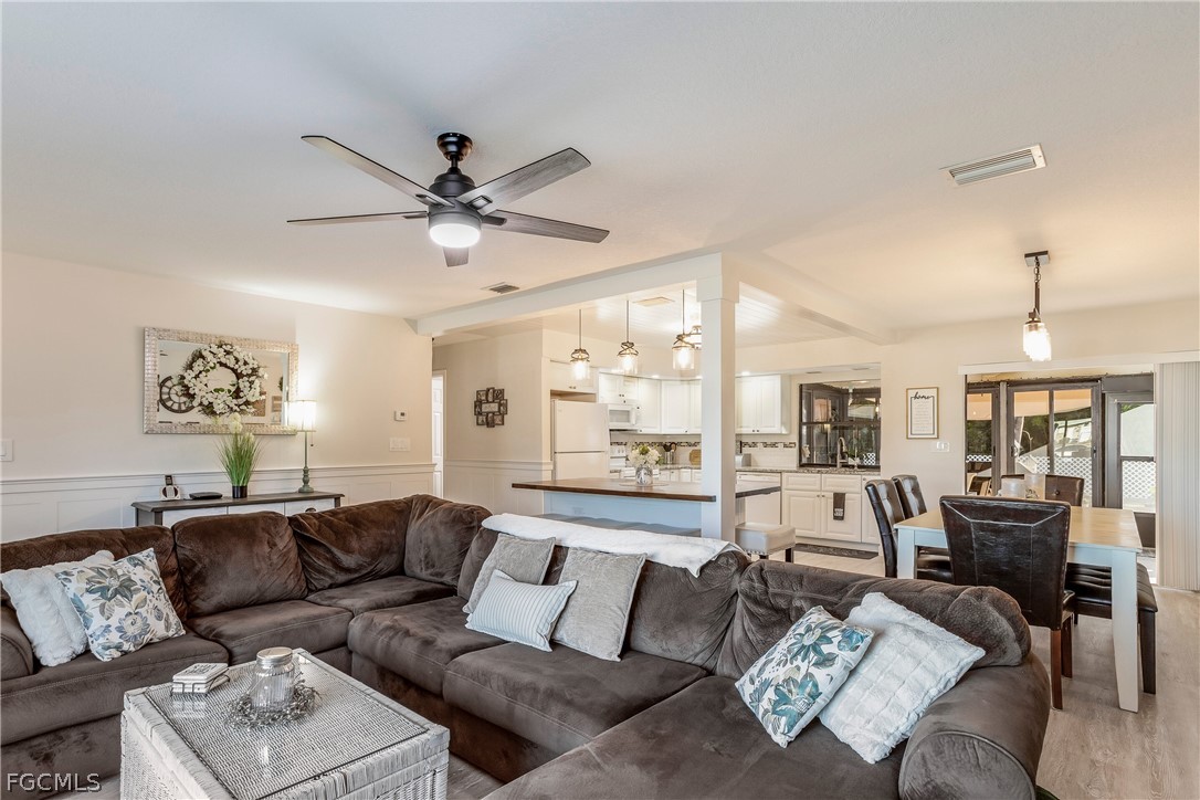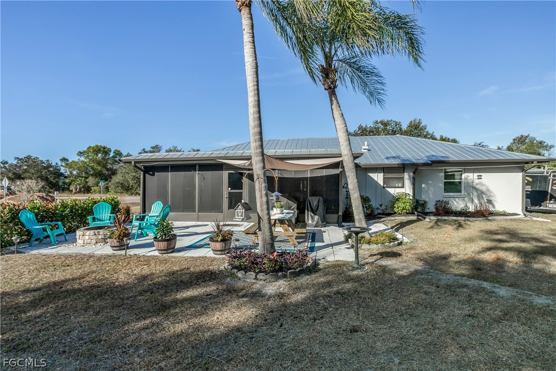 Welcome to your dream home! This beautiful 2-bedroom, 2-bathroom home is a true gem. Step inside to discover a tastefully remodeled kitchen and bathrooms, granite counter top, and breakfast bar for informal eating. The master bedroom has a walk-in closet with extra shelving. The interior and exterior of this home has been freshly painted in neutral colors with new luxury vinyl flooring throughout. Enjoy peace of mind with a 2022 metal roof, providing durability and contemporary style. Updated 80 gal water heater, A/C installed 2020, Impact windows installed in 2020 (excluding sliders), flood the interior with natural light, creating a warm and inviting atmosphere. Sliders take you to large Florida room complete with vinyl windows & screens. This home is located on an oversized corner lot with a 10 x 12 shed with loft for extra storage, patio pavers and boasts a fire pit with room for a future pool making this home ideal for entertaining. The 2 car garage floor has been recently finished with Epoxy. Don’t miss this opportunity to make this your home sweet home!