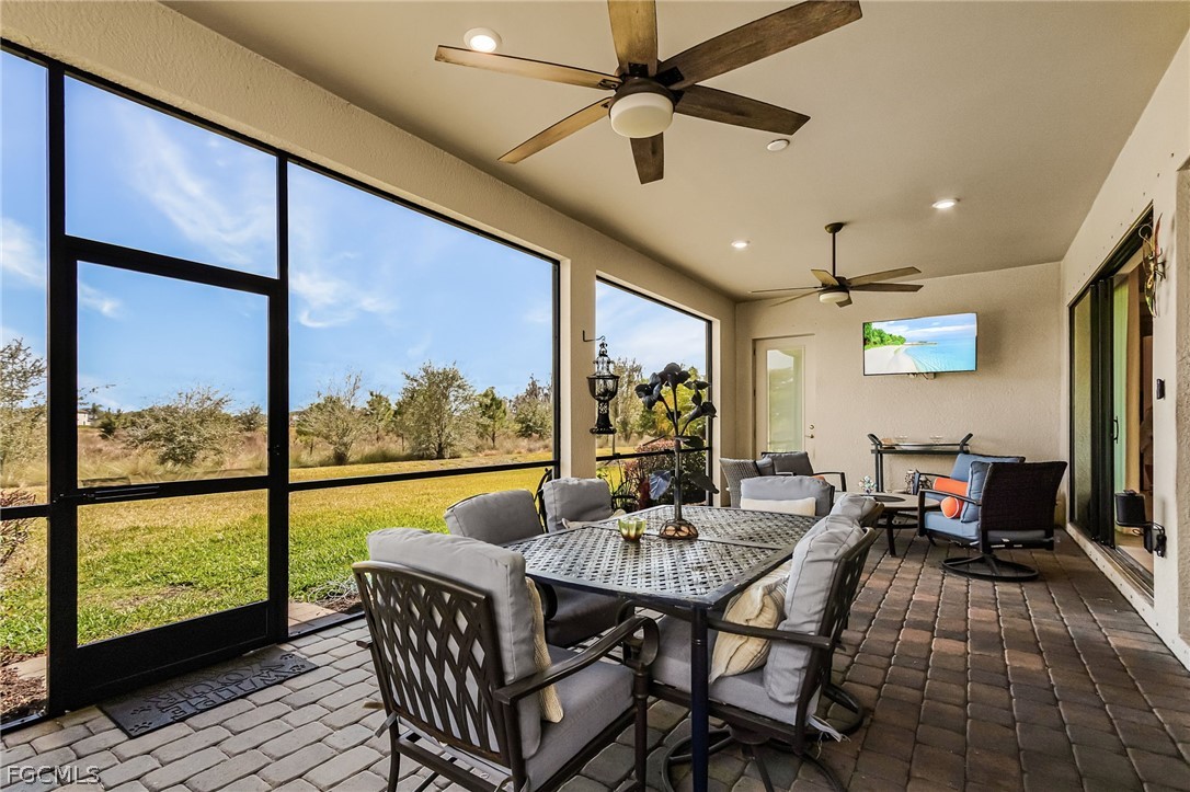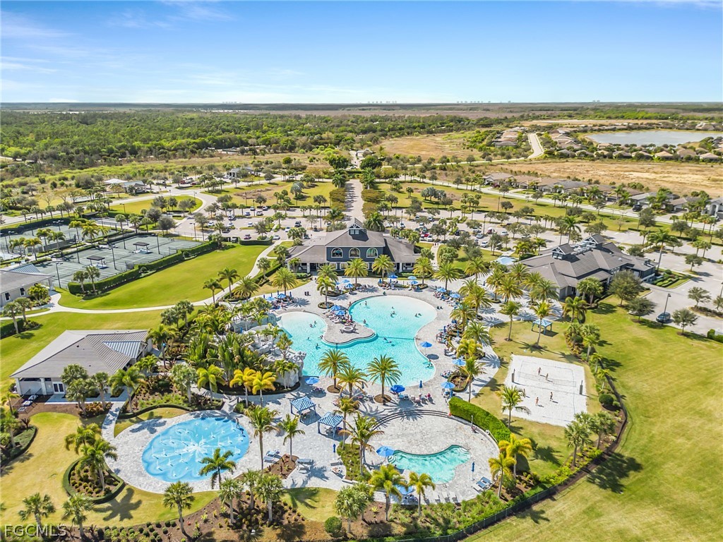 The minute you enter the double front doors of this beautiful home, you will feel the 2852 square foot of luxury living space that this home has to offer. With the Open floor plan combined with the volume ceiling heights gives you a very nice sence of space. The gourmet kitchen with its oversized sit up to island, offers ample cabinetry and a walk in Pantry, opening directly to the spacious great room with a dedicated home office space. The Guest Bedrooms each having there own bathrooms, are positioned on opposite sides of the home to create a private setting for your friends/family. This Eastern Rear Exposure with its screened in Lania area, provides plenty of room to add a private pool creating the indoor/outdoor Florida experience everyone dreams of. As a resident of The Place at Corkscrew, you'll enjoy access to many remarkable resort-style amenities that will meet your every need, including a sprawling pool with cascading waterfalls, a spa, splash pad, cooling cabanas, and an exhilarating 100-foot water slide. Residents also enjoy a state-of-the-art fitness center, movement studio, tennis, pickleball, basketball, and bocce courts. Dining and social options include an indoor restaurant, outdoor bar, bourbon lounge, and café—plus community fire pits, live entertainment, and more. Additional features include a dog park, playground, child watch services, full-service spa, and 24-hour manned gate access for added peace of mind. The Place at Corkscrew is in a Prime Location, just minutes to Shopping, Schools, Airport, and Beaches.