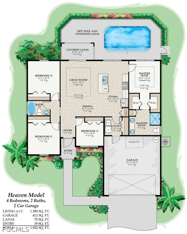 High Celling with tray in the living room and master bed.