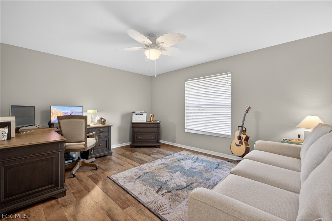 Exceptionally maintained pool home in the desirable McGregor area of Fort Myers offered fully furnished and turnkey. This spacious two-story residence features 4 bedrooms plus 2 dens, 2 full baths, and 1 half bath across 2,886 square feet, offering flexibility for guests, home offices, or multi-purpose living. The expansive kitchen provides abundant cabinetry, granite countertops, generous prep space, and two full-size refrigerators. The first-floor primary suite includes french doors leading to the lanai, while a dedicated office/den and guest half bath are also located on the main level. Upstairs are three guest bedrooms, a full bath, and an additional flex room or second office. The outdoor living area includes a large covered lanai with outdoor kitchen, generously sized and heated pool, paver deck, open air grilling space, trellis, landscape and mood lighting, and a fully fenced backyard with grass run for pets. The home has been extensively updated including: repainted inside-and-out, plumbing and electrical, designer fixtures and fans, new mechanicals including top-of-the-line HVAC systems, impact-rated windows and doors, and a new impact-rated garage door. The 25x22 side-load two-car garage features an epoxy floor and mini-split A/C. Located in an X flood zone with no flood insurance required and in McGregor Garden Estates of Argyle with low HOA dues of $400 per year. Ask your agent for The Full Scoop—insight beyond the MLS, including detailed features, upgrades, and ownership highlights.