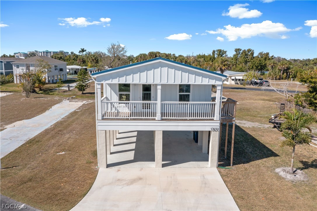 Welcome to Sunshine Mobile Village, where coastal charm meets modern construction. Built in 2024, this beautifully appointed 2-bedroom, 2-bath residence offers a bright, open-concept floor plan designed for comfortable everyday living and effortless entertaining. Elevated on concrete pilings, the home provides added hurricane protection and generous covered parking and storage space below. Offered TURNKEY furnished and tastefully decorated, this home is truly move-in ready. High-quality finishes throughout include impact-resistant windows and doors, a standing seam metal roof, solid wood soft-close cabinetry, quartz countertops, and stylish, modern design details that set this property apart. Sunshine Mobile Village offers a vibrant 55+ lifestyle with a freshly remodeled clubhouse, heated community pool, and shuffleboard courts—perfect for enjoying Florida’s year-round sunshine. Ideally located in one of Southwest Florida’s most desirable areas, you’ll have convenient access to Sanibel Island, Fort Myers Beach, HealthPark Medical Center, and an abundance of shopping and dining options. Opportunities like this are rare—schedule your private showing today.
