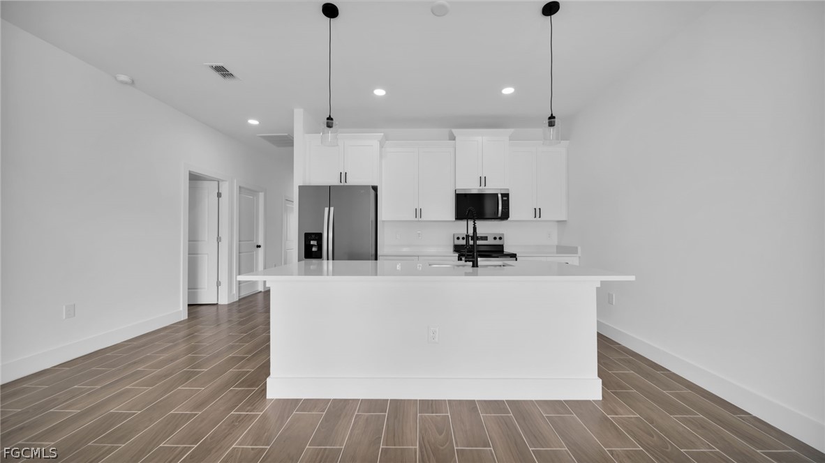 Be the first to live in this stunning brand-new construction duplex, offering modern design, comfort, and functionality. This spacious 3-bedroom, 2-bathroom residence features a bright open-concept layout with sleek contemporary finishes, quartz countertops, and stainless steel appliances throughout the kitchen. The thoughtfully designed split-bedroom floor plan provides added privacy, while the generous primary suite includes an en-suite bath. Additional highlights include tile flooring throughout, in-unit washer and dryer, a 2-car garage, and a screened-in covered lanai—perfect for relaxing or entertaining outdoors. Utilities & Maintenance: Property is served by a private well — no water or sewer bills Tenant responsible for electricity and all other utilities (cable, internet, and optional services) Washer and dryer are provided by the landlord for tenant use and convenience. Tenant agrees to use all appliances properly and promptly report any maintenance issues; damage caused by misuse or negligence will be the tenant’s responsibility. Conveniently located near schools, shopping, dining, and major roadways, this home offers the perfect balance of comfort and accessibility. Move-in ready and easy to show — schedule your private tour today.