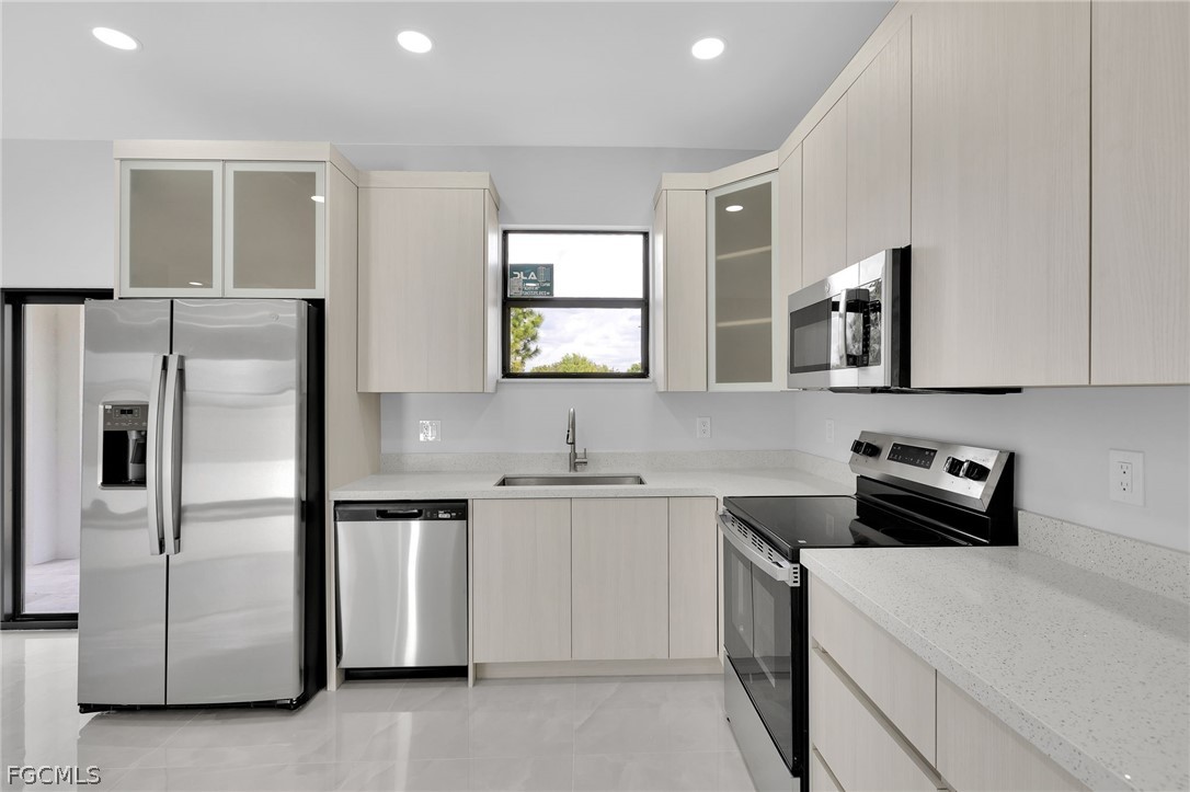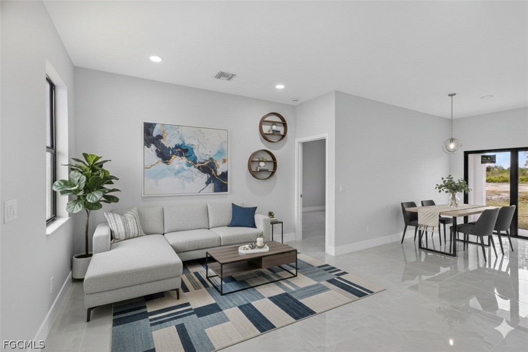 Seller is motivated and ready to make a deal! 10 Year Structural Warranty and 3% seller credit toward buyer’s closing costs with full-price offer. Local, experienced builder with outstanding customer support. 100% completed and ready to move-in. Be sure to click on the 3D virtual tour! This beautifully designed new construction home sits on a corner lot and offers a modern living space. Featuring 3 bedrooms, 2 bathrooms, and a 1-car garage, the home includes 10-ft ceilings, hurricane-impact windows and doors, and washer/dryer installed in a separate laundry room. Enjoy 32x32 porcelain tile flooring throughout, high-profile baseboards, and a spacious kitchen with custom cabinetry, quartz countertops, and a full suite of Samsung stainless-steel appliances. Bathrooms showcase quartz finishes, glass shower doors, and premium fixtures. The property also includes a full irrigation system. Surrounded by new homes in the desirable 33976 zip code, this residence combines style, quality, and value. Don’t miss your chance!
