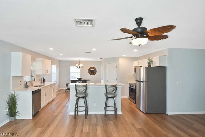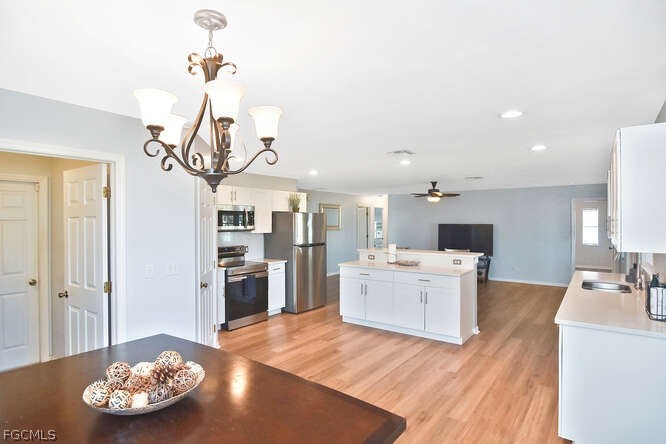 With no HOA and located in a NON-flood zone, this Lehigh Acre home is a gem. Easy access to stores and shops and the neighborhood is growing. The home features a spacious open floor plan with laminate flooring throughout the main living areas. There is plenty of room to entertain on your screeded lanai that overlooks a large backyard that has room for pool. Make your appointment today!
