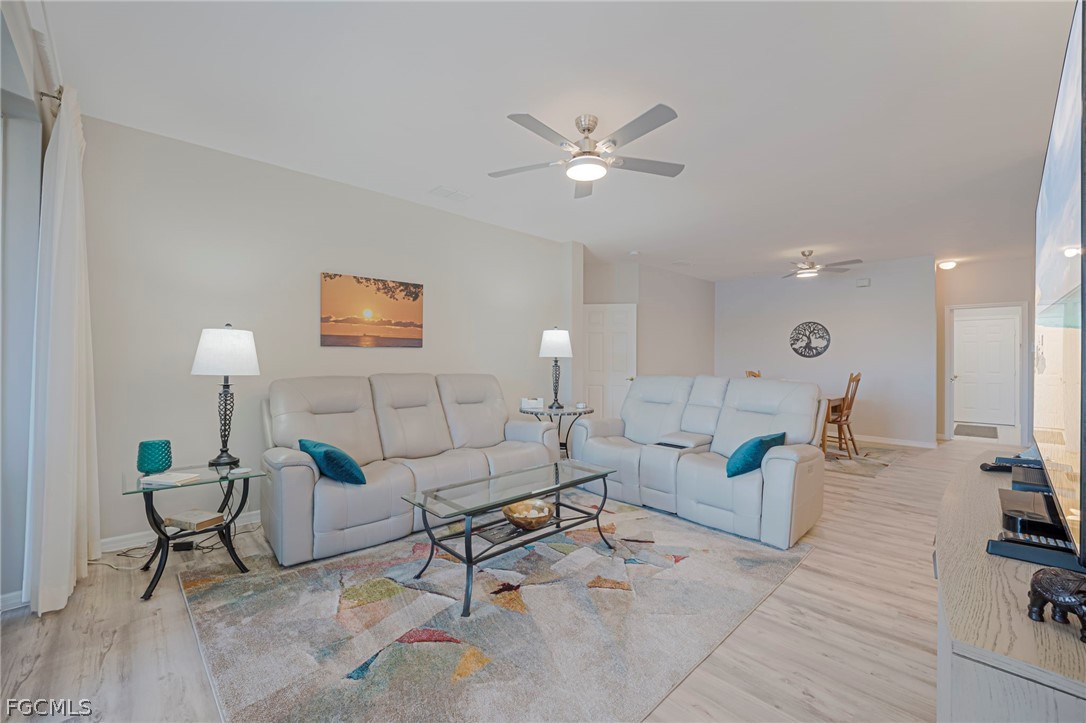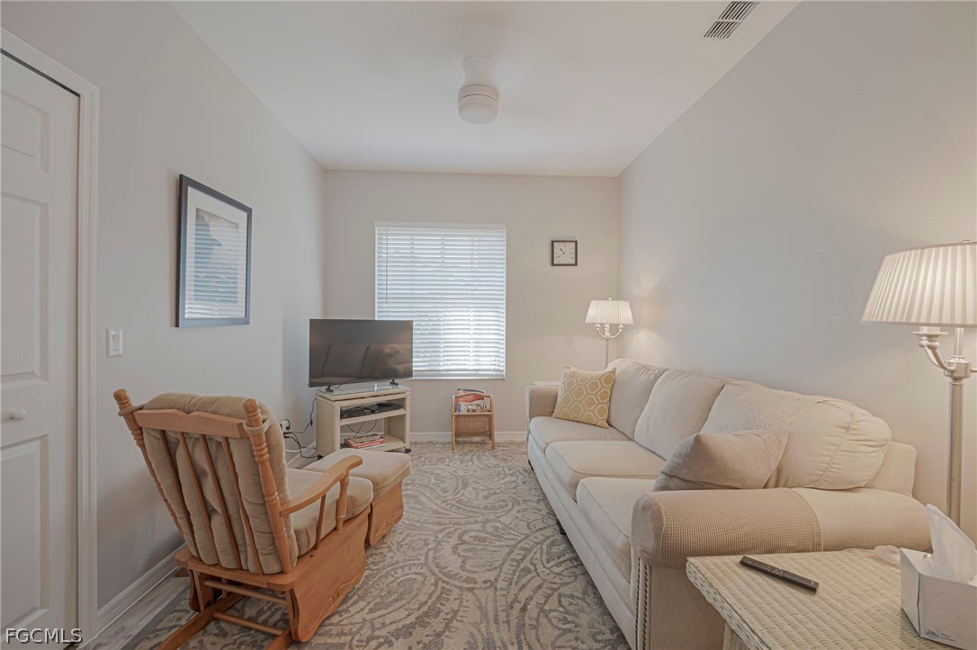 Beautifully updated first-floor end-unit condo featuring 2 bedrooms, 2 bathrooms, a den, and an attached 2-car garage. Enjoy stunning sunset lake views from this light and bright residence, ideally positioned within the community. The spacious floor plan offers an open living and dining area, screened lanai with western exposure , nicely upgraded interior finishes, and a versatile den perfect for a home office or guest space. Located just minutes from Sanibel Island and Fort Myers Beach, this property offers convenient access to world-class beaches, shopping, dining, and entertainment. Parker Lakes residents enjoy access to community amenities including a pool, fitness center, tennis courts, and pickleball. Ideal for seasonal, full-time, or investment use.