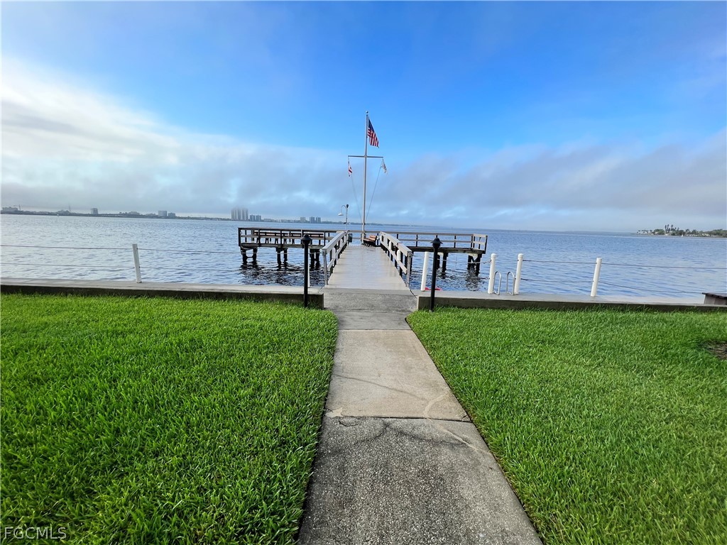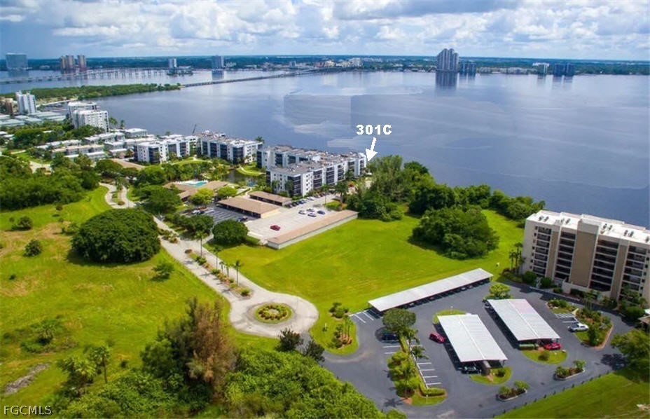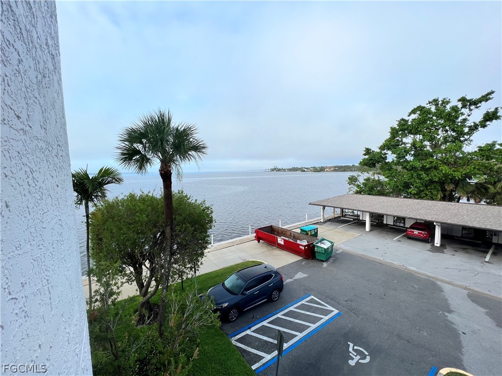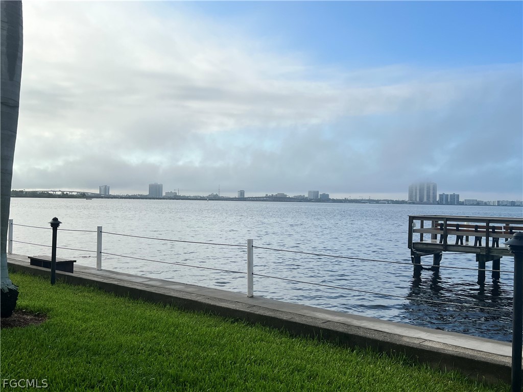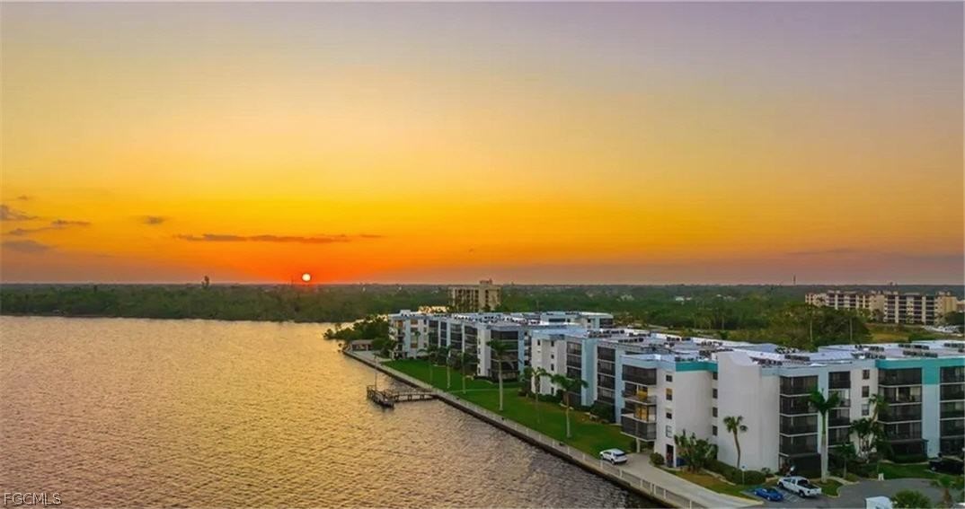 Welcome home to this beautiful one bedroom 2 bath waterfront condo situated along the banks of the Caloosahatchee. This is the only unit in Schooner Bay with a private balcony that cannot be seen by your neighbors. Just look at that view and those sunsets -- to die for! Imagine waking up to the dolphins playing in the river below. The living room furniture is Italian Leather and the dining room table is travertine with leather chairs. There is even a stand alone fireplace for those few cold SWFL evenings. Schooner Bay is a resort-style community right on the river featuring amazing views of downtown Ft Myers, a heated community pool, community rooms, a fishing pier, river front beach with fire pit and so much more!!!! Walking distance to a marina which offers deep water slips and waterside restaurants and bars not far from Fort Myers Beach. You can easily add a 2nd bedroom in the current dining area (or just add a Murphy Bed). Schedule your viewing now. You will be happy you did!!