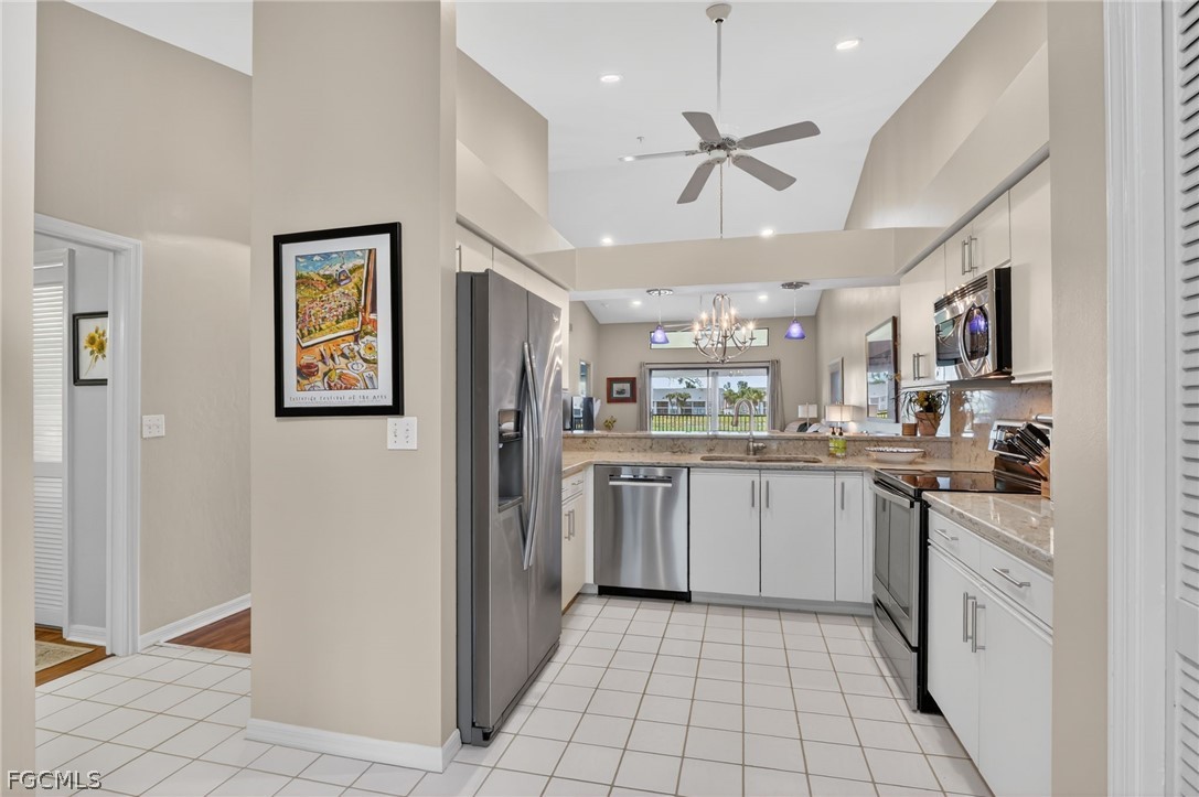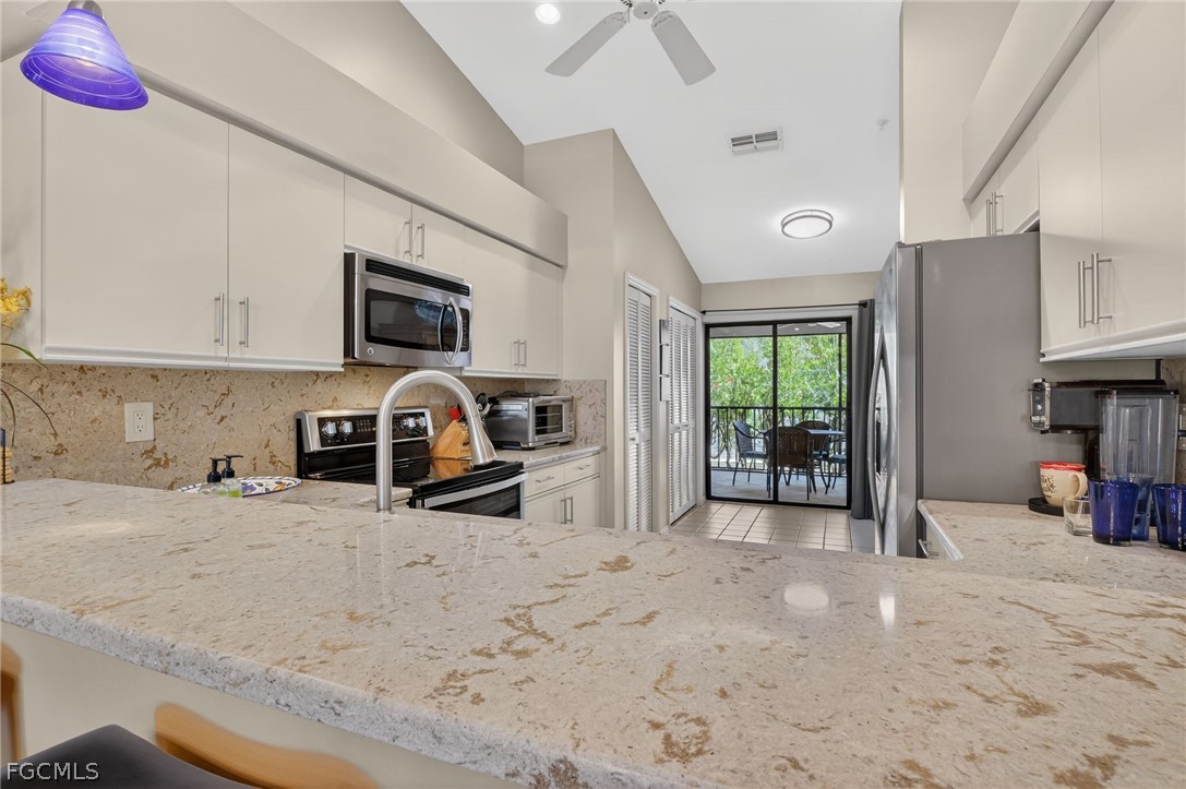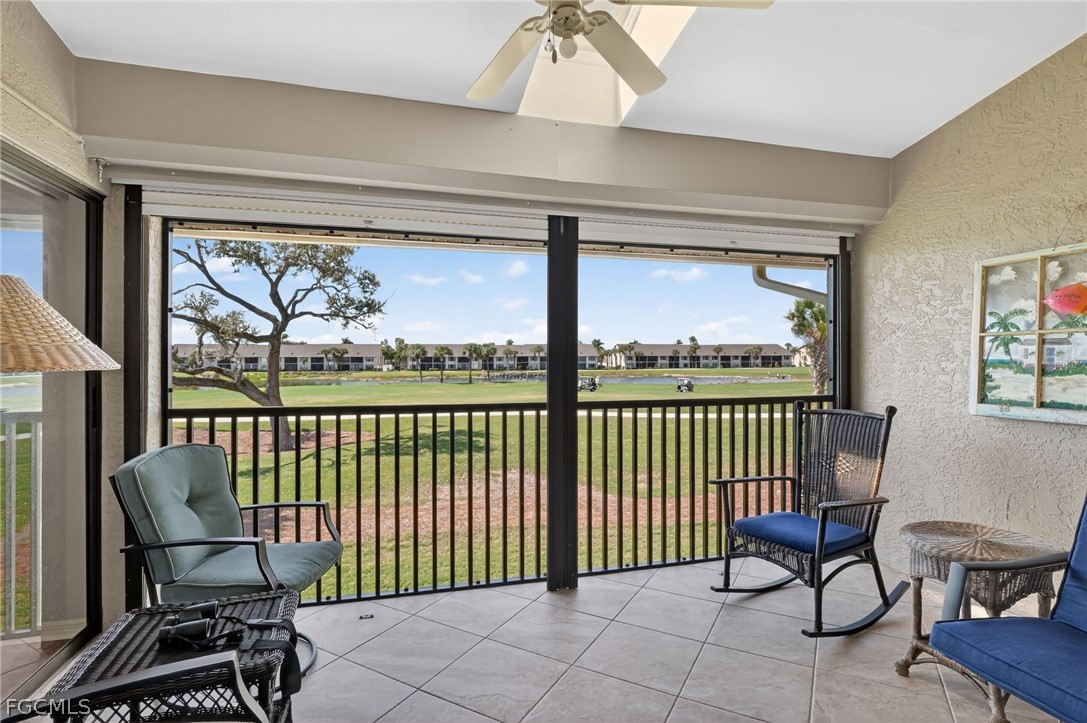 Quiet end-unit offering privacy and natural light throughout. This desirable second-floor end residence with Den features cathedral ceilings, and a light and bright open layout. Beautifully updated kitchen and bathrooms provide modern comfort and style, making this home truly move-in ready. There are spectacular golf and water views from your relaxing lanai. Kelly Greens is a private bundled golf course community with a Gordon Lewis designed course, indoor and outdoor dining with a friendly wait staff! Situated in a gated community within minutes to Sanibel and Ft Myer beaches, shopping, hospitals and restaurants and Ft Myers International Airport.