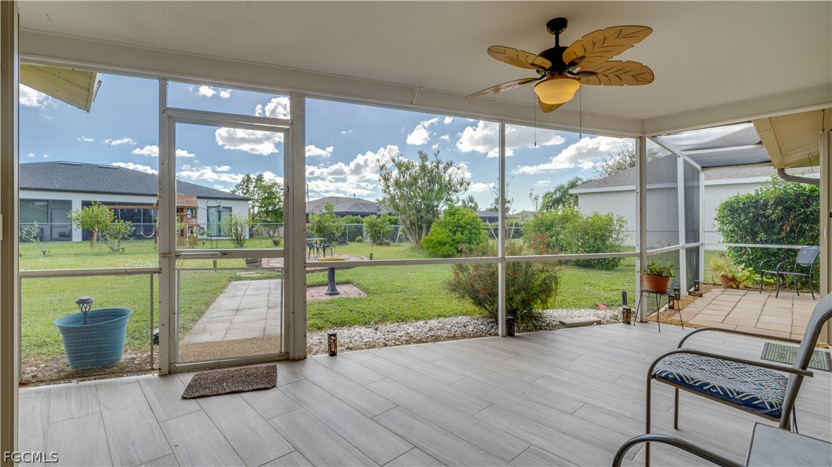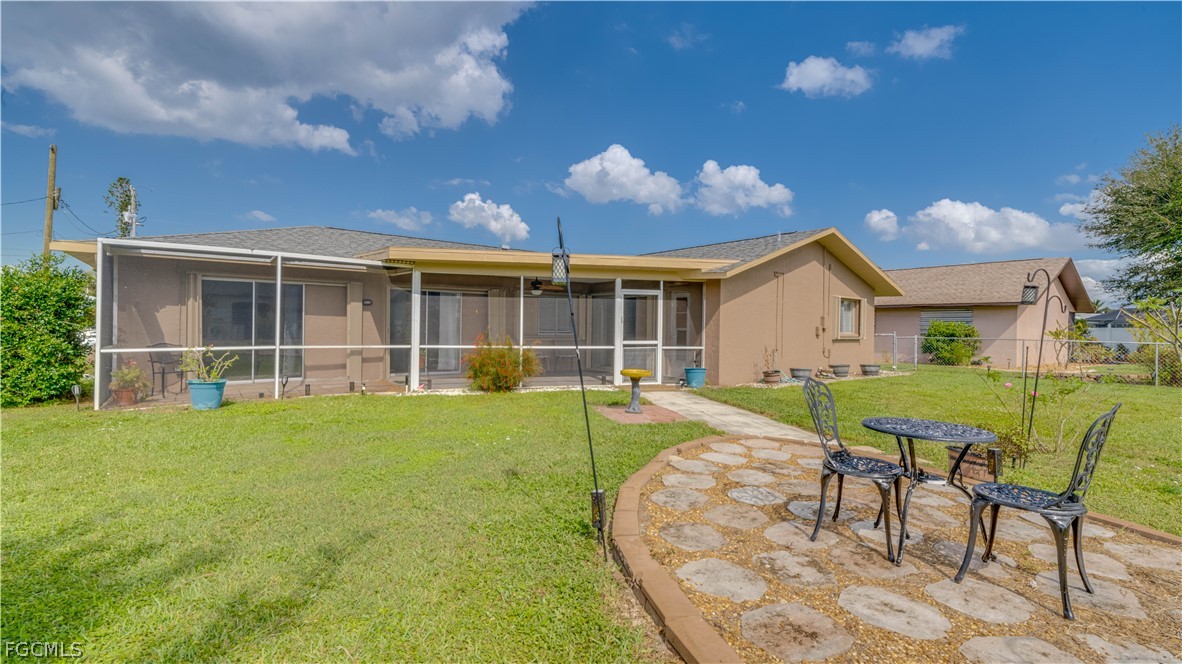 Available 4/1/26!! Don't miss your opportunity to rent this dog friendly, fenced-in, 3 bedroom 2 bathroom Southeast Cape Coral home. Upon walking through the front door you experience the open floor plan, with a kitchen completed with granite counter tops, 42-inch white shaker cabinets and stainless steel appliances. This home welcomes you with wood plank tile, a kitchen pass thru to the screened porch and fenced in backyard. The living area is equally fit for families and entertaining. Located in a NON-FLOOD ZONE, and with close proximity to Cape Coral's Redevelopment District, Yacht Club Beach, Jaycee's future food truck park and easy access to Veteran's Bridge make this tucked away property a location that is truly in the center of everything. Bring your dogs, this won't last long!