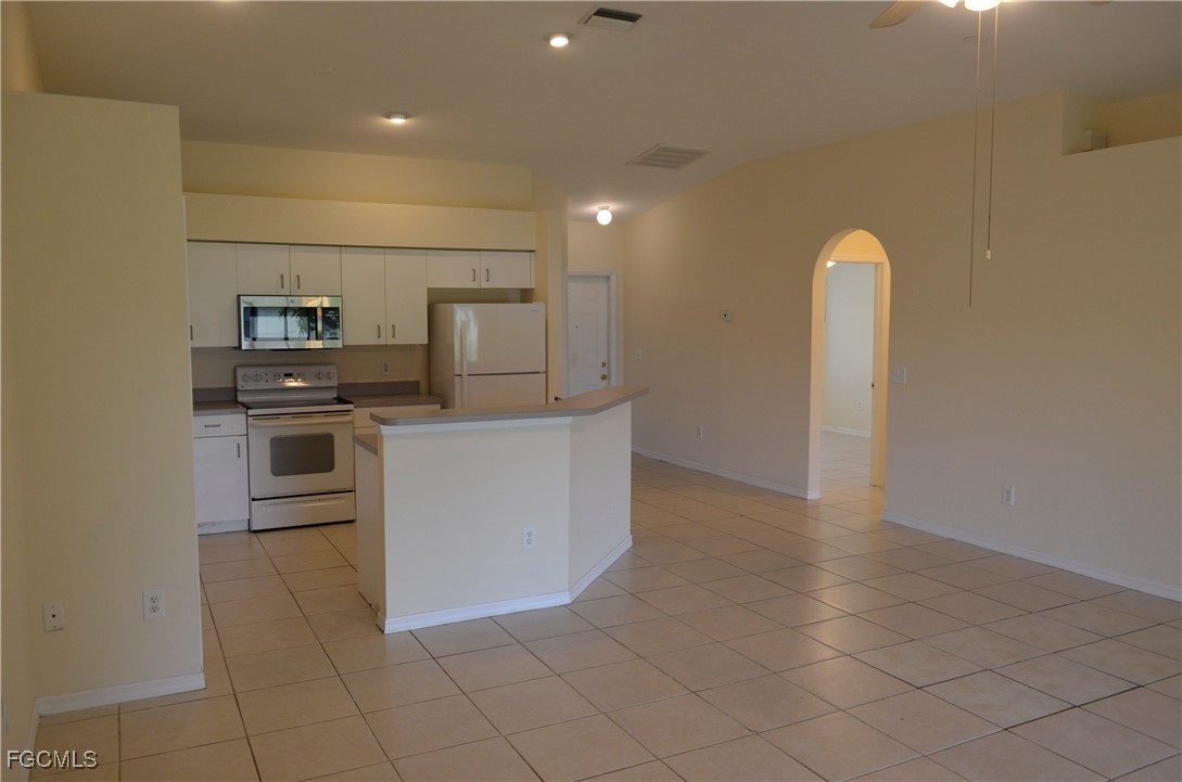 Step inside and be wowed by soaring ceilings in the great room and kitchen, creating an airy, open feel you’ll love coming home to. The interior has been freshly and completely painted, giving every space a crisp, move-in-ready look. Enjoy thoughtful touches like ceiling fans, accordion storm shutters, a spacious kitchen island, and the convenience of a washer and dryer—plus an attached garage for secure parking and extra storage.