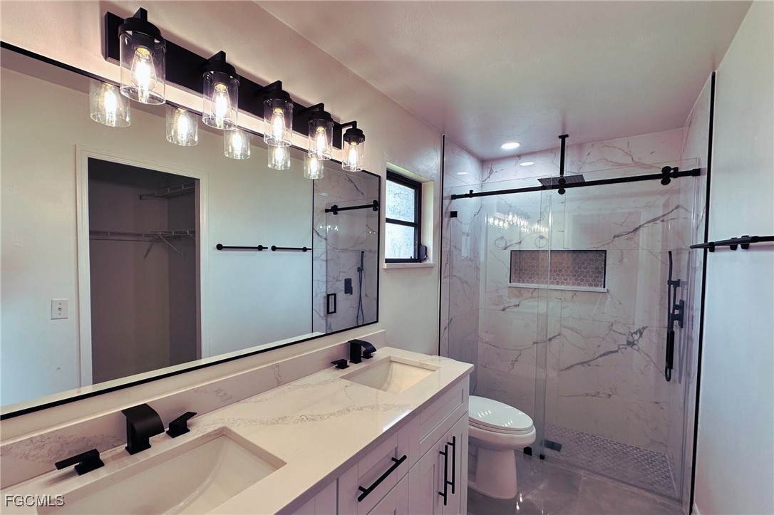 Both bathrooms are spa-inspired, offering modern shaker vanities with oversized mirrors, quartz counters and glass-enclosed walk-in showers with rainfall shower heads and matte black hardware, creating the ultimate retreat for relaxation.
