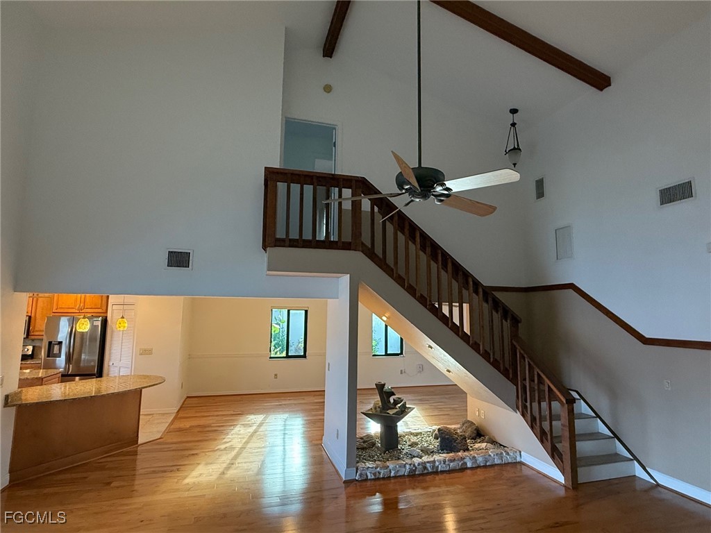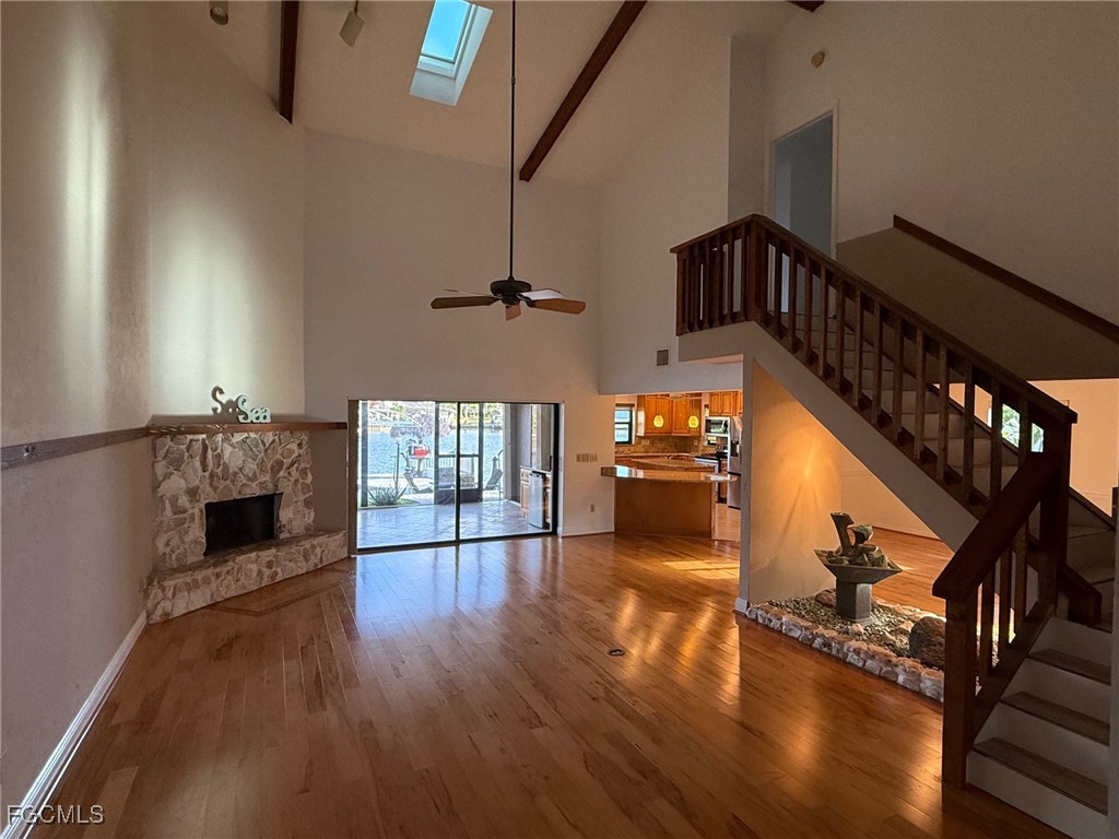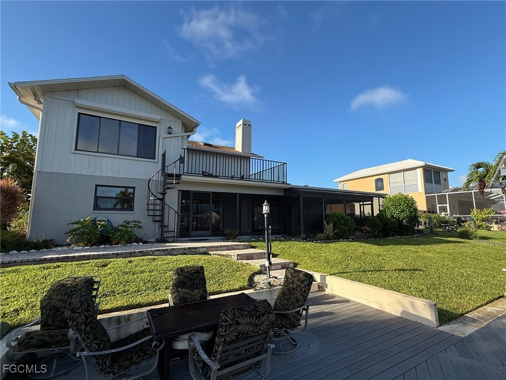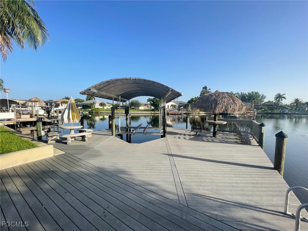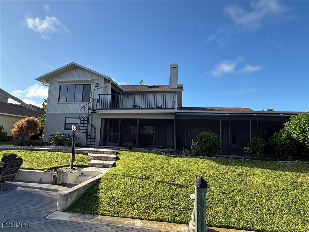 Sailboat Access Property with breathtaking views of the Canal Basin. This property is very well kept and features 2 stories, 3 bedrooms, 3 bathrooms, a very spacious living room and large dining room. The property features a very nice boat dock and boat lift which are included. There are 2 main bedrooms one of them is located on the main floor while the other one is located upstairs with its own bathroom and access to the balcony. The main living room boasts a huge ceiling as well as an open kitchen with island. The backyard features a large under truss lanai sitting area which spans the entire width of the property and is screened in. There is a walkway down to the over sized dock and tiki hut. Enjoy your morning coffee or evening cocktail with this beautiful view. There is also an upstairs balcony that overlooks the backyard, dock and water basin. The spiral staircase makes access to the backyard very easy without having to go through the home. **Equal Housing Opportunity**