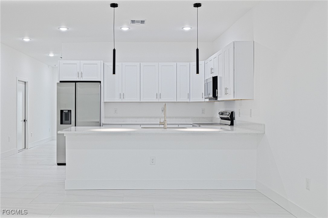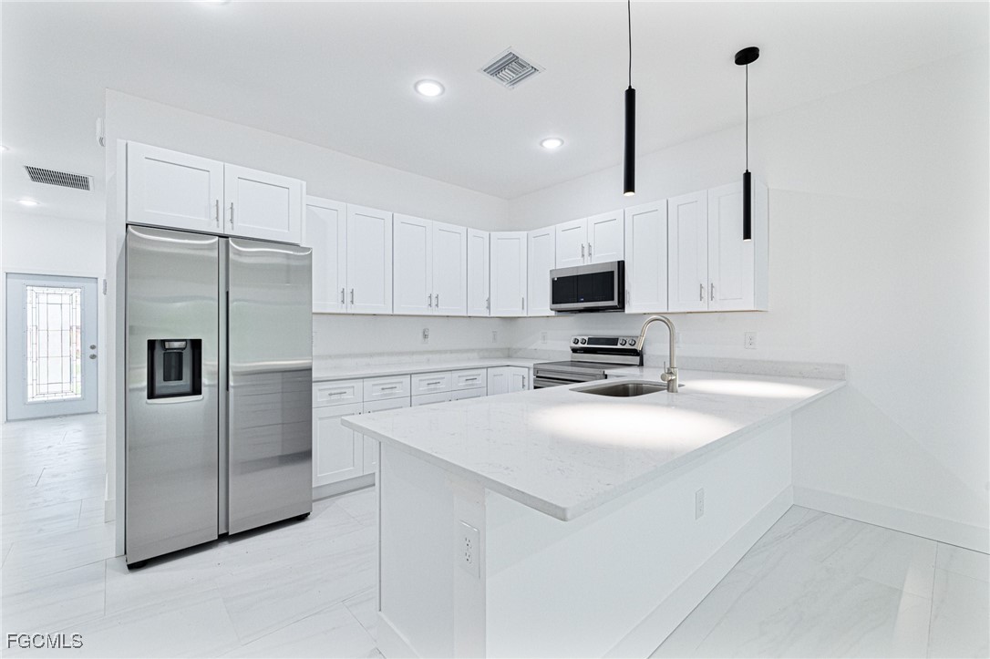 Step inside to a spacious walk-in entryway that opens to a modern layout with luxury flooring, a contemporary kitchen with brand-new appliances, a private laundry room, and a covered two-car garage. Perfectly situated in a welcoming neighborhood with beautiful views, this duplex redefines comfort, style, and family living in Lehigh Acres.