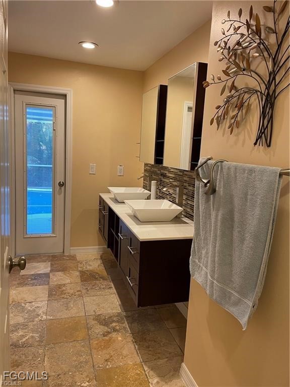 This home offers huge rooms everything is brand new the kitchen has a family room attached with breakfast bar for 2 and a wine cooler & bar cooler in the kitchen area. All GE Profile appliance pkg. and has 2 master suites one at the front and the back of the house. Then the pool bath hallway offers 2 huge bedrooms that are carpeted. Ceiling fans in everyroom. The entier back wall of the house is sliding glass doors entering the pool area from everyroom. There is an RV hook up on the left side of the house.The garage has been opoxied and hooks in the ceiling to hang bikes.This home is located on El Rio Golf Course hole 16.