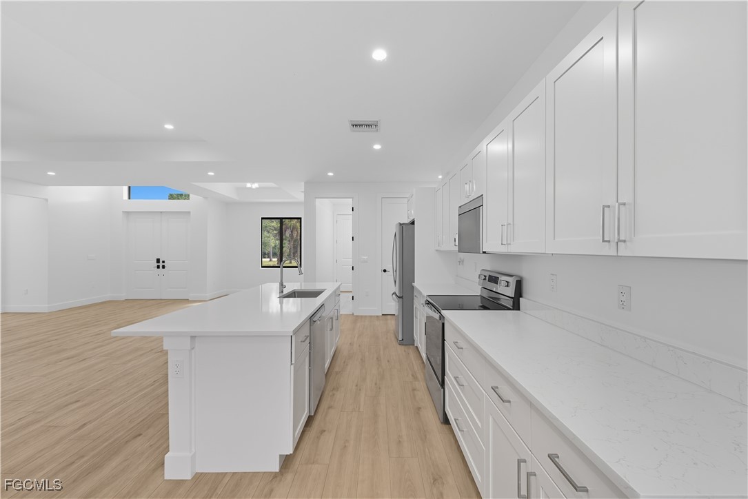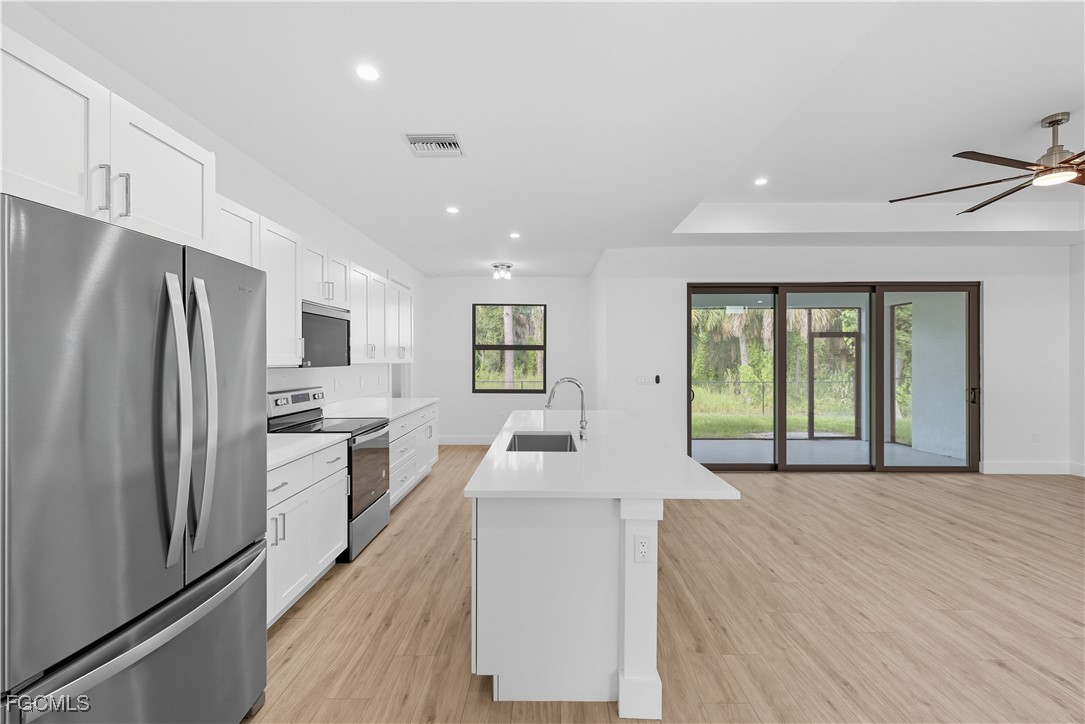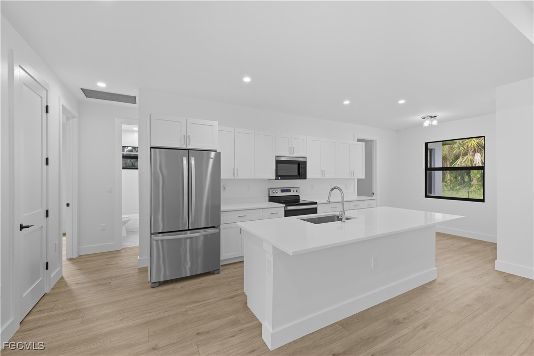 Beautiful like-new ground-level single-family Naples home for rent in Golden Gate Estates! Built in 2024 with 2083 under air, this stunning unfurnished home features 4 bedrooms, 3 bathrooms, a 2-car garage, all warranted kitchen & laundry appliances, stainless steel kitchen appliances, Quartz kitchen counters, hard flooring throughout (no carpet), ceiling fans throughout, a walk-in closet, storage galore & more! The primary suite is a true retreat, complete with a luxurious en-suite bathroom featuring dual vanities, a soaking tub, and a separate state-of-the-art shower. Enjoy the lush landscaping and privacy from the oversized screened lanai! Pet(s) possible with Owner approval + a one-time, non-refundable Pet Fee determined on a case-by-case basis! Lawn care & trash included, Tenant to pay all in-home utilities. Reverse Osmosis & exterior pest control are optional Tenant-paid services. Available now!