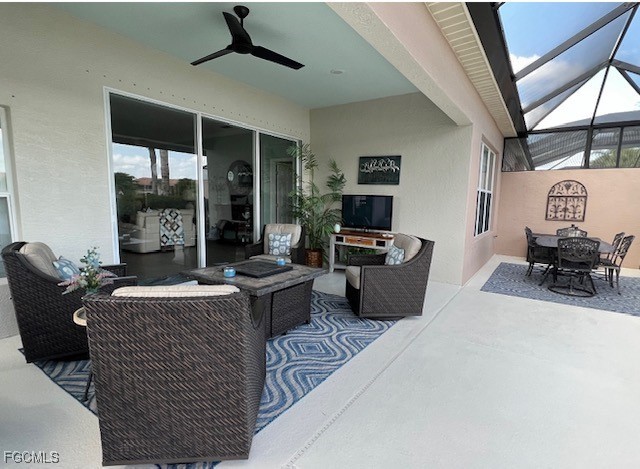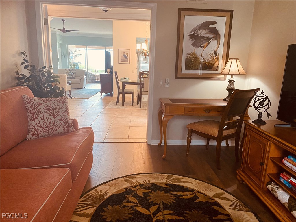 AVAILABLE NOVEMBER AND DECEMBER. You have a gorgeous view of the golf course and lake off your lanai in this beautiful fully furnished 2 bedroom, 2 bath with den villa in the golf community of Colonial Country Club. This villa is on the corner with an oversize lot, and views from every angle. Colonial Country Club has all the amenities you are looking for including tennis, golf, pickleball, bocce, pools throughout, a beautiful dining room and clubhouse and much more. Don't miss out spending your vacation in this spacious home.