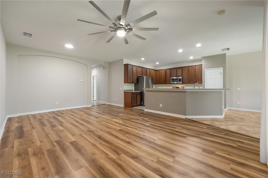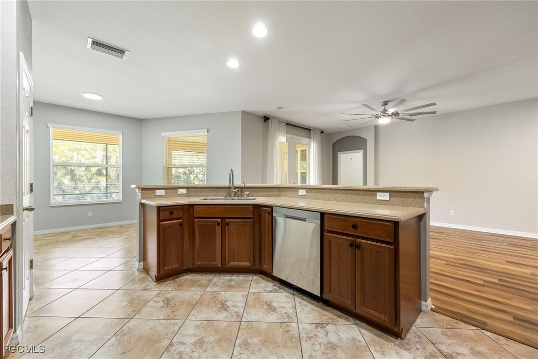Move-in ready 4-bedroom Kingsley model ideally situated on a quiet cul-de-sac just minutes from Fort Myers Beach and Sanibel. This well-maintained home offers an open-concept design with a bright kitchen featuring 42” cabinets, crown molding, center island, breakfast bar, pantry, and plenty of natural light. The spacious primary suite includes custom walk-in closets, a garden tub, and separate shower.