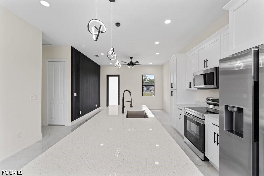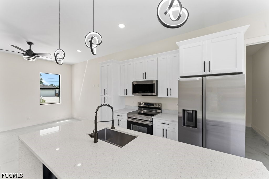 Brand-new construction 3BR/2BA home priced to sell in Lehigh Acres! This modern residence features a sleek exterior design, open-concept living, amazing kitchen island and quality finishes throughout. Centrally located near main roads, shopping, schools. Ideal for buyers looking for a moving ready home in a growing area at an amazing price!!!
