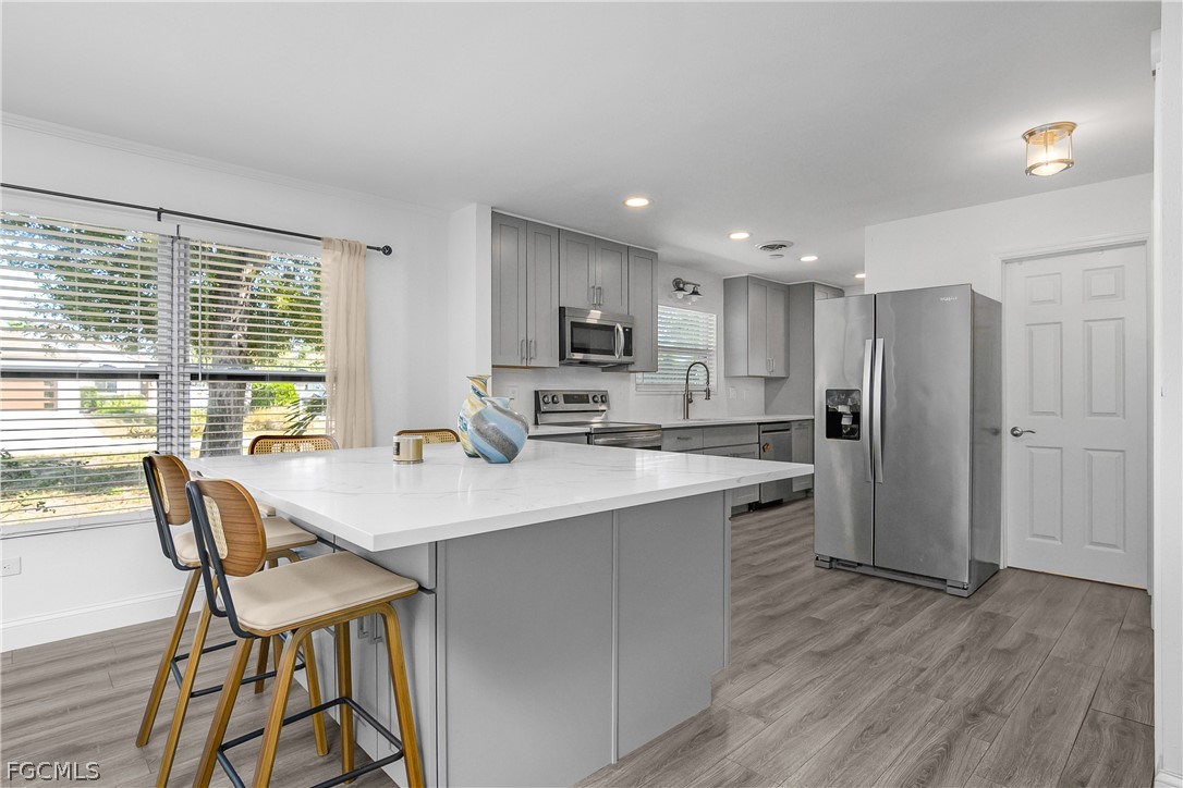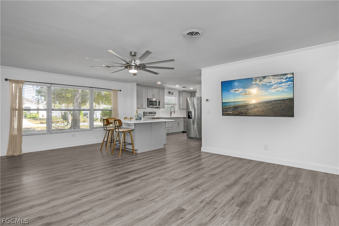 174 2nd St is a 3 bed 2 bath single family home located in the unincorporated section of Bonita Springs. NO HOA! This home was fully Modernized and updated in 2023 with Stainless Appliances in the kitchen, new countertops, new cabinets, and huge new kitchen island w/storage, New floors, new paint interior and exterior, updated bathrooms, metal roof, new landscaping, sod, and irrigation, Enjoy the peaceful outdoors from your private screened in lanai, FULLY fenced in backyard! PETS - No Pets Allowed