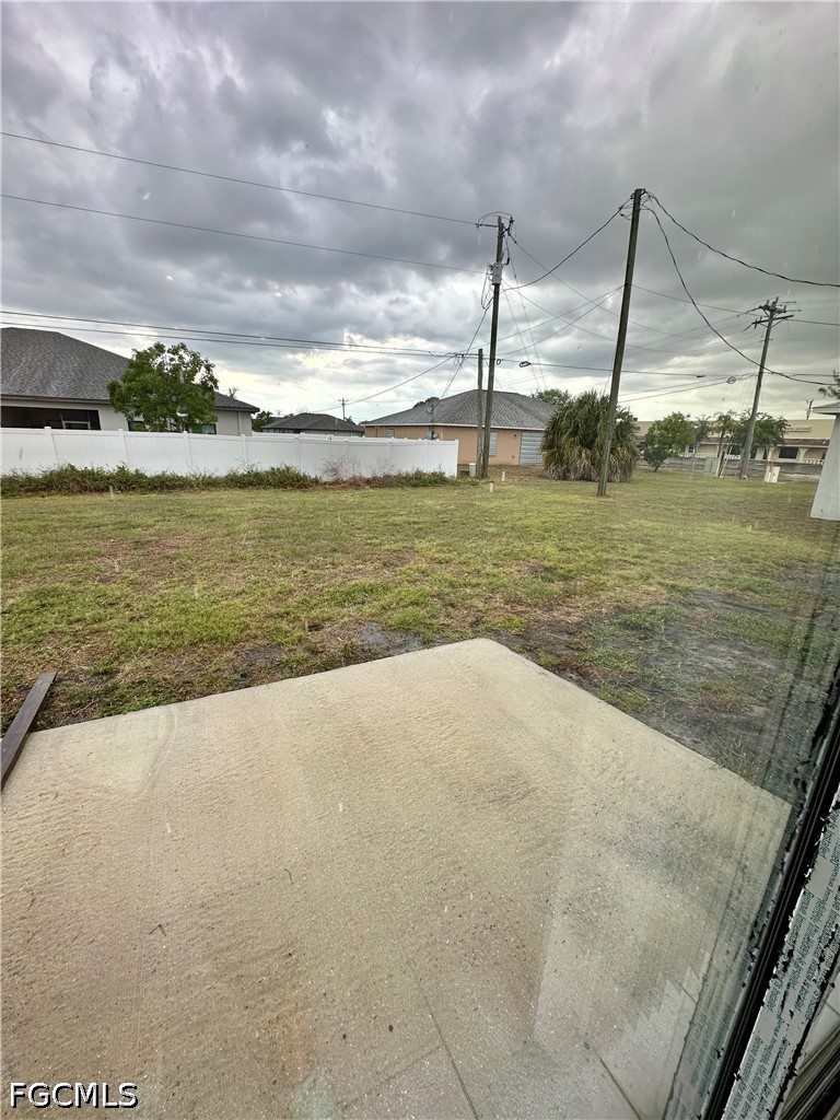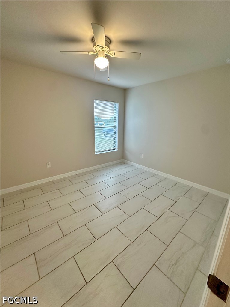 Newer duplex available in SW Cape Coral neighborhood. This well-kept 3-bedroom, 2-bath residence offers tile flooring throughout, soaring ceilings, granite countertops, and stainless steel appliances. The open-concept design creates a comfortable and inviting living space. Washer and dryer hookups are provided in the garage (appliances not included). The home also features a spacious backyard, with lawn care included in the monthly rent.