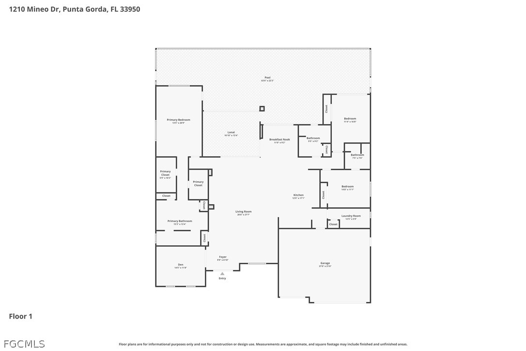 Welcome to an exceptional waterfront retreat in the highly sought-after community of Punta Gorda Isles! This stunning 3 bedroom PLUS den, 3 bath residence offers over 2,700 square feet of refined living space, where elegance, comfort, and coastal sophistication come together seamlessly. From the moment you step inside, you’re greeted by an expansive open-concept design, soaring ceilings, and an abundance of natural light that highlights the home’s upscale finishes and thoughtful details. The spacious living areas flow effortlessly, creating the perfect setting for both intimate gatherings and grand entertaining. The sliding doors open up to seamlessly connect indoor and outdoor living, while offering breathtaking waterfront views, bringing the beauty of Southwest Florida right into your home. The gourmet kitchen is a true centerpiece, featuring an abundance of cabinetry, quartz countertops, a large center island, soft-close drawers, and convenient pull-out shelving. A dinette area overlooks the water offering the perfect spot for casual dining. There is also a formal dining room with gorgeous tray ceilings offering a more elegant setting. The luxurious primary suite is a private sanctuary with direct lanai access, two walk-in closets, and a spa-inspired bathroom complete with dual vanities, a soaking tub, and a walk-in shower. There are two additional bedrooms for guests; one features an ensuite bathroom. There is also a third full bathroom with lanai access for easy clean up after spending time in the pool/spa or on the boat! The versatile den provides an ideal space for a home office or quiet retreat. Step outside to your private oasis where a heated saltwater pool and spa await, all set against serene waterfront views. Additional highlights include a well-appointed laundry room with a utility sink and added shelving, as well as a new roof. The three car garage offers plenty of room for your cars, golf cart, & hobbies. The spacious lanai is designed for relaxation and entertaining, capturing the essence of Florida living. Enjoy boating? You are only steps away from your extended concrete dock and boat lift, offering quick powerboat access out to Charlotte Harbor and beyond to the Gulf of Mexico. Just minutes from dining, shopping, golf, Fishermen's Village, and historic downtown Punta Gorda, this residence offers the perfect balance of privacy and convenience.