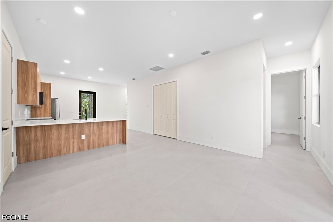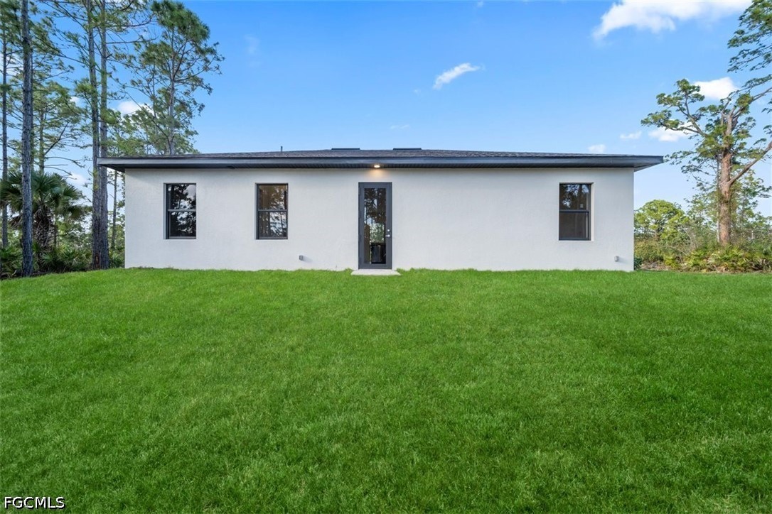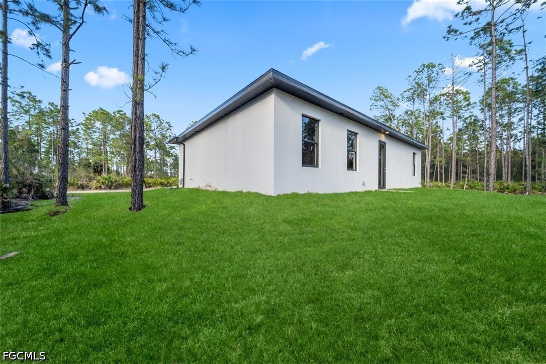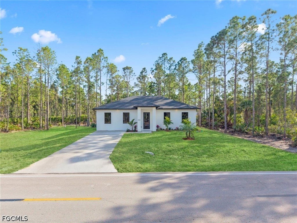 Newly constructed single-family home in Lehigh Acres, completed in early 2026. The home features 3 bedrooms plus a den and 3 bathrooms. The left side of the property functions as an in-law suite with its own bedroom, living area, and private bathroom. The layout provides flexibility to use the space as a single-family residence or create up to three independent in-law suites, ideal for homeowners or investors. Conveniently located in a quiet area with easy access to major roadways.