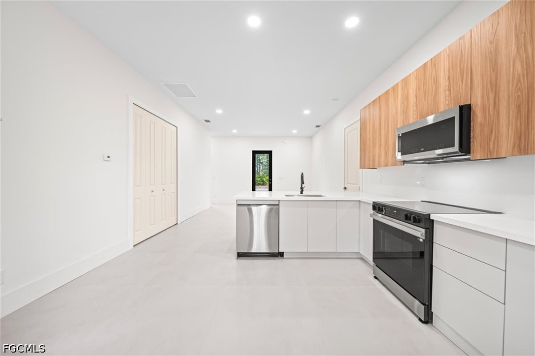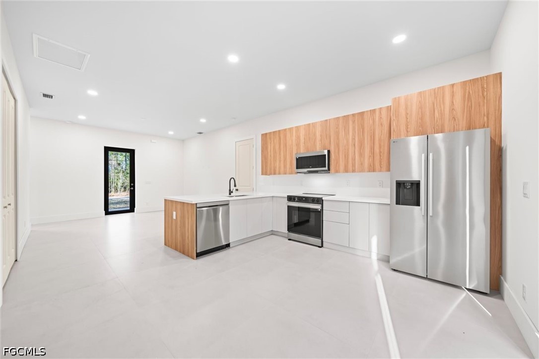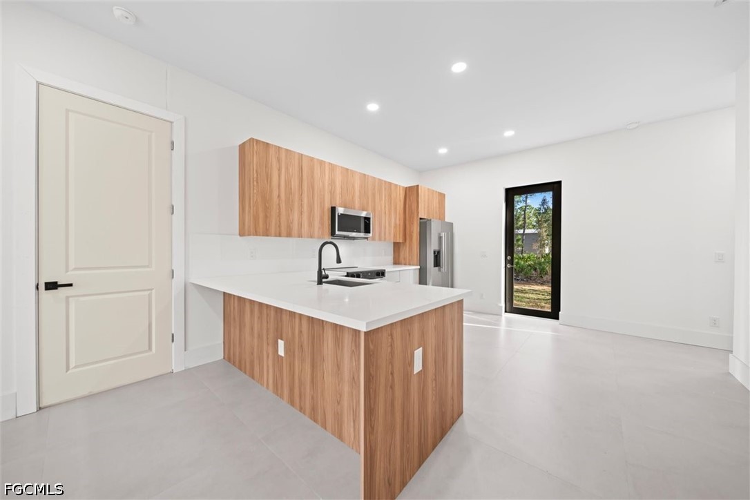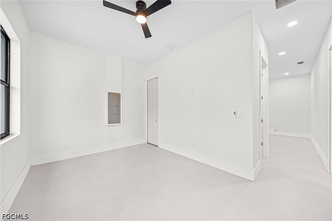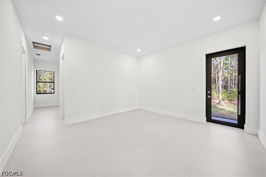 Newly constructed single-family home in Lehigh Acres, completed in early 2026. The home features 3 bedrooms plus a den and 3 bathrooms. The left side of the property functions as an in-law suite with its own bedroom, living area, and private bathroom. The layout provides flexibility to use the space as a single-family residence or create up to three independent in-law suites, ideal for homeowners or investors. Conveniently located in a quiet area with easy access to major roadways.
