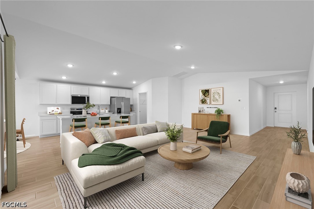 NEW CONSTRUCTION WITH WARRANTY! *Estimated delivery June/July 2026.* The Palm offers 1,550 square feet of thoughtfully designed living space. The spacious Great Room with its vaulted ceiling flows effortlessly to the private covered lanai—ideal for indoor-outdoor living and entertaining. At the heart of this open layout, the kitchen features a freestanding island, walk-in pantry, and designer cabinetry, opening to a bright dining area with a tray ceiling and abundant natural light. The primary suite includes a generous walk-in closet and a private bath with dual vanities, a tiled shower, and convenient linen storage. Additional highlights include upgraded plank tile throughout the entire, designer cabinetry & quartz counters in the kitchen and baths, hurricane-impact windows and doors, stainless steel kitchen appliances, and an attached two-car garage. Pictures, renderings, & virtual tour are of similar home & are used for display purposes only.