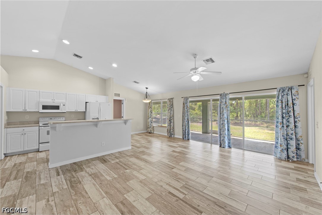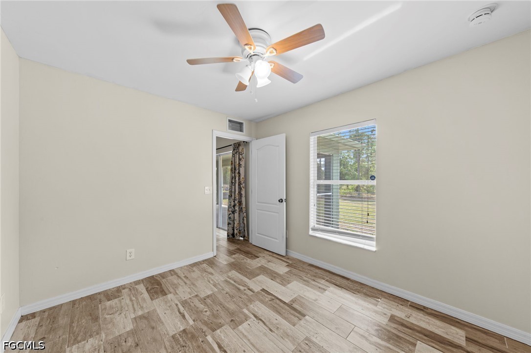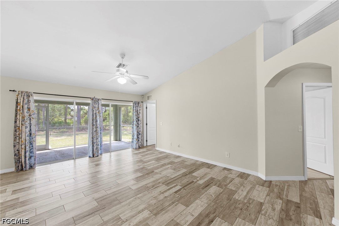 This beautifully updated 3/2/2 plus den offers space, style and privacy in a highly desirable private setting. NEW ROOF in 2025. From the moment you arrive, you’ll be drawn in by the charming screened porch and fresh interior and exterior paint that give this home a clean, modern feel. Step inside to attractive vaulted ceilings, decorative plant shelves, and wood plank-style tile flooring that flows throughout the main living areas. The flexible den with French doors provides the perfect space for a home office, playroom, or potential 4th bedroom. The kitchen is equipped with newer appliances purchased in 2023, a pantry for added storage, and opens seamlessly to the main living space, well laid out for both everyday living and entertaining. The spacious master suite features two large walk-in closets, while the guest bedrooms are connected by a convenient Jack-and-Jill style bathroom. Additional upgrades include modern lighting and ceiling fans, a security system, and complete gutter installation in 2025. One of the standout features of this home is the enormous screened rear porch that spans the entire length of the house, complete with three upgraded fans, perfect for enjoying Florida living year-round. The backyard offers plenty of space for outdoor activities, including a horseshoe pit, and backs up to a wooded area for added privacy. With a Southern rear exposure, the yard is ideal for building your dream pool while enjoying sunlight throughout the day. Additional highlights include hurricane impact windows for peace of mind, energy efficiency and improved insurance savings. This move-in ready home combines comfort, upgrades, and outdoor living. Pictures don't serve it justice, schedule your private showing to check it out in person today!