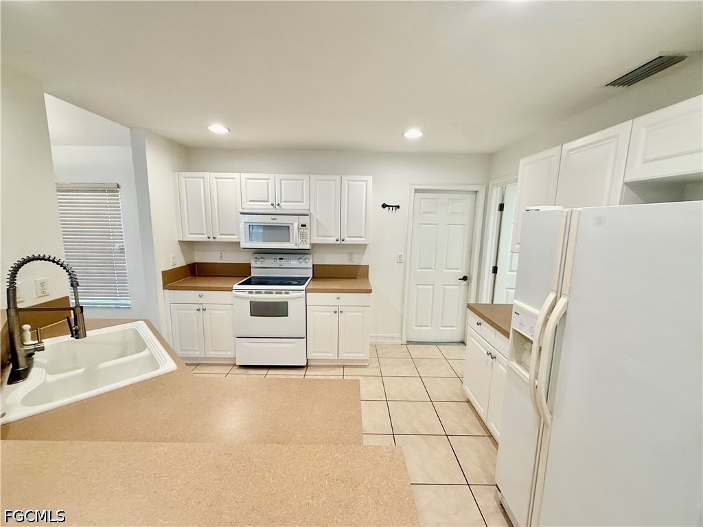 Affordable 3 bedroom 2 bath home with a double garage, FENCED BACKYARD, double gate on one side for additional RV, truck or boat parking inside the fenced area, NEW DIMENSIONAL SHINGLE ROOF IN 2024, NEW CENTRAL HEAT AND AIR IN 2025, NEW WATER HEATER IN 2020, screened front porch, cathedral ceilings and plant shelves, wood floors in the living area with ceramic tile in the kitchen, baths and indoor laundry room, breakfast bar and pantry in kitchen with all kitchen appliances, primary bedroom with walk in closet and private bath with dual sinks, long vanity and walk in shower, built in desk in between the two guest bedrooms, double garage with opener plus laundry tub, sliding doors from the main living area to the 29 X 10 screened lanai overlooking the backyard plus a 19.5 X 8 open patio, plenty of room for entertaining, excellent location just minutes to I-75, Ft Myers and the SWFL International Airport. NO FLOOD INSURANCE REQUIRED. LEHIGH IS THE HIGHEST ELEVATION IN LEE COUNTY.