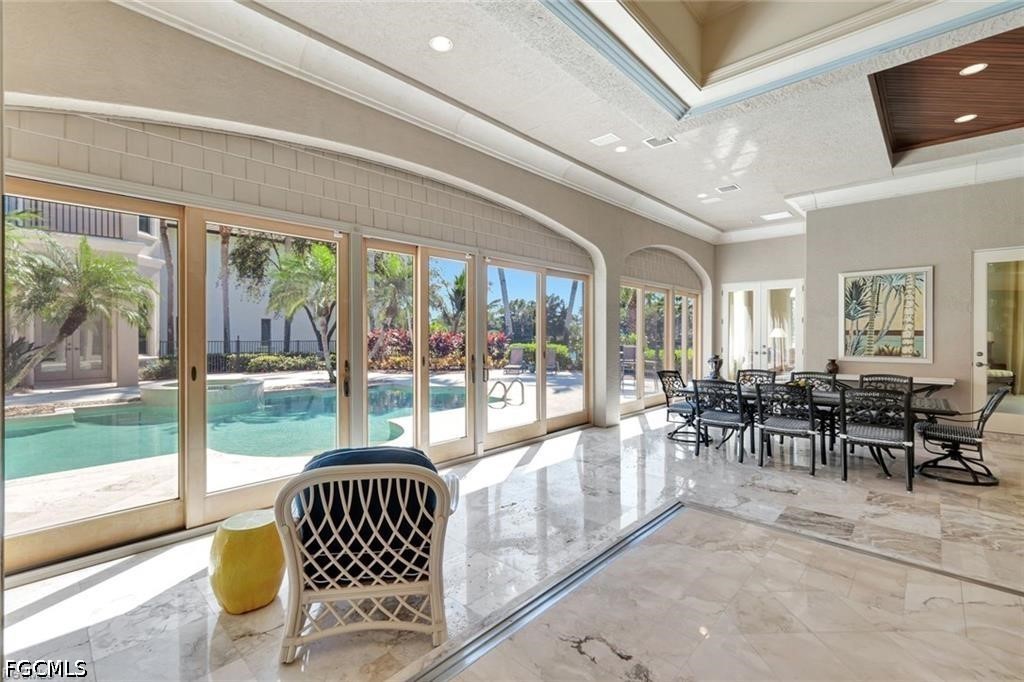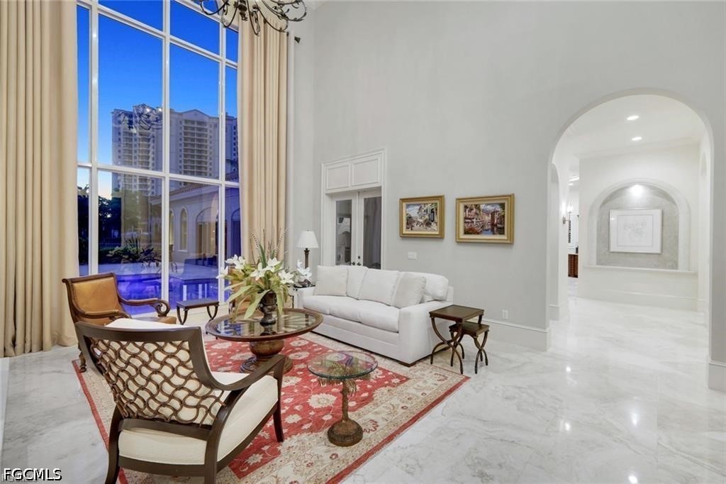 END OF SEASON OPPORTUNITY. SIGNIFICANT PRICE REDUCTION FOR IMMEDIATE SALE. THIS EXCLUSIVE OFFERING IS AVAILABLE ONLY THROUGH MONDAY, APRIL 13. NEW ROOF COMING! This stunning 5,613 square foot custom Imperial Homes estate in Tuscany Isle at The Colony Golf & Bay Club offers a seamless blend of timeless architecture, modern luxury, and breathtaking lake views within one of SWFL’s most prestigious gated communities. Featuring 4 en-suite bedrooms, 4.5 bathrooms, and a private cabana with its own living room and coffee bar, this residence is thoughtfully designed for luxury living, entertaining, and hosting guests. Handcrafted double doors into a grand interior defined by soaring ceilings, floor-to-ceiling windows, and natural light, all perfectly framing the resort-style pool and lake beyond. Elegant entertaining spaces include a butler’s pantry and wet bar with custom cabinetry, wine storage, and a beverage refrigerator. The chef’s kitchen is appointed with a Dacor gas range, Sub-Zero refrigerator, center island, and walk-in pantry, ideal for both everyday living and entertaining. Interior finishes showcase marble flooring, a gas fireplace, and barrel-vaulted ceilings with accent lighting, creating a warm ambiance. The expansive primary suite serves as a private retreat, featuring a sitting area with direct access to the pool and spa, dual custom walk-in closets, and a spa-inspired bathroom with Jacuzzi tub, dual vanities, and a walk-in shower. A private elevator provides access to the second level, where guests enjoy additional en-suite bedrooms, a family room loft with wet bar, and private balconies. The Florida room offers year-round indoor-outdoor living, complete w/ Blackstone grill. Outdoors, a gas heated resort-style pool and spa are perfectly positioned to capture peaceful water views and exceptional privacy—ideal for relaxing after a day on the golf course! Recent upgrades include new A/C units, water heaters, hardwood flooring, carpet, and fresh interior and exterior paint. The property also features a 3-car garage and oversized 0.56-acre homesite. Home has had NO storm damage and NOT IN A FLOOD ZONE. Living at The Colony Golf & Bay Club offers a true resort-style luxury lifestyle. Newly renovated Bay Club, a waterfront dining venue with open-air terraces and a rooftop bar showcasing panoramic Estero Bay sunsets. Additional amenities include access to Pelican Landing’s private 34-acre island beach park via boat shuttle, a state-of-the-art fitness center, tennis and pickleball facilities, and a scenic kayak and canoe park along Spring Creek. The Colony Golf & Country Club features a championship 18-hole Jerry Pate-designed golf course w/ dining & social events. A significant advantage: the seller’s existing Colony Sports Membership is transferable, allowing the buyer to bypass the waitlist and enjoy immediate access to tennis, fitness, spa, dining, social amenities, and limited in-season golf with unlimited off-season play.