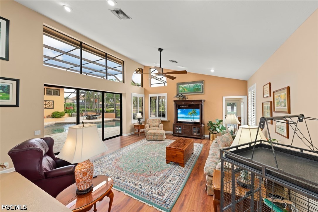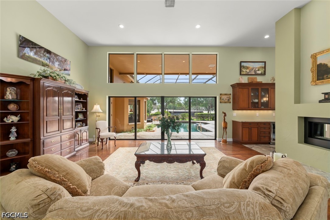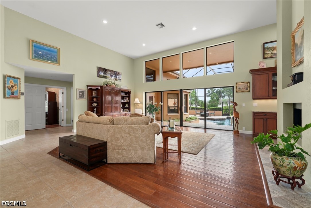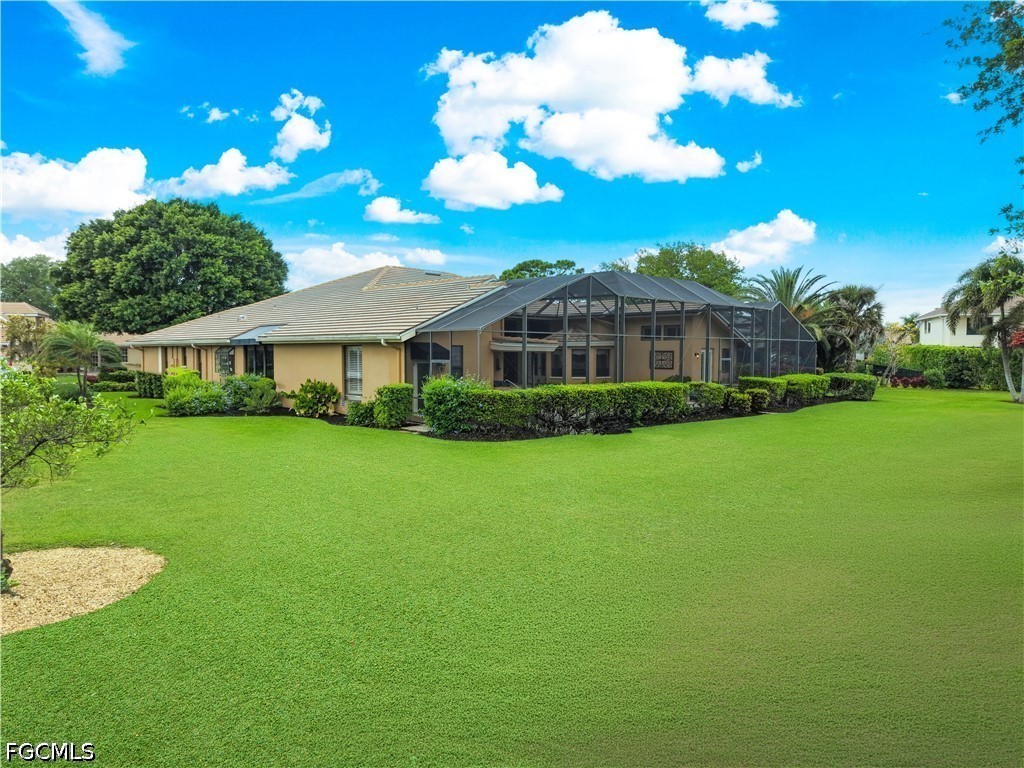 This stunning home is ideal for that Florida lifestyle. Boasting of 4 bedrooms, 4 baths, and over 4,000 sq ft of living area. Lots of natural light and brightness highlighted by soaring ceilings. The pool-patio area is ideal for family fun and large gatherings. All outdoor furniture is included. Other extras include, leaf protection gutters, tankless water heater, pool bath, no carpet, Hurricane Resistant garage doo, gas fireplace, 2 car garage plus golf cart space, fridge in garage stays. Facing the #11 of the Long Mean Golf Course currently under reconstruction. All situated on a quiet cul-de-sac lot. Easy access for gate and a short stroll to the Clubhouse. A true showplace! The owner has even lined a professional home inspector in advance. Available to buyer once contract is signed. MANDATORY EQUITY MEMBERSHIP FEE OF $115,000 DUE AT CLOSING. ADDITIONAL MONTHLY FEES APPLY.