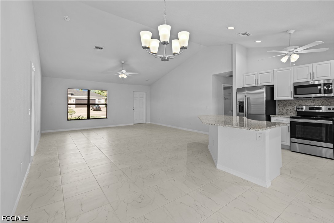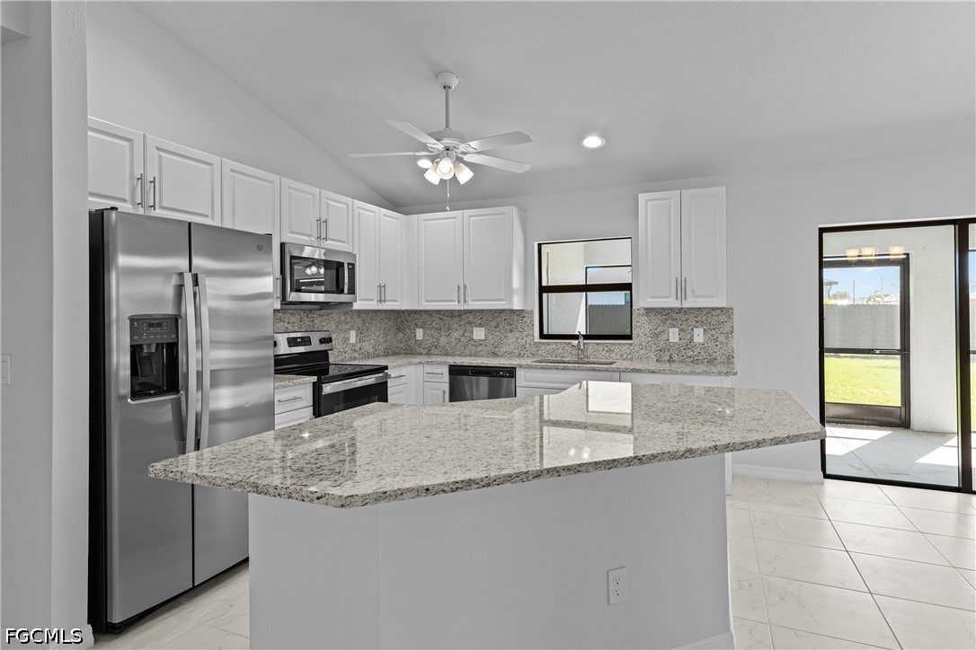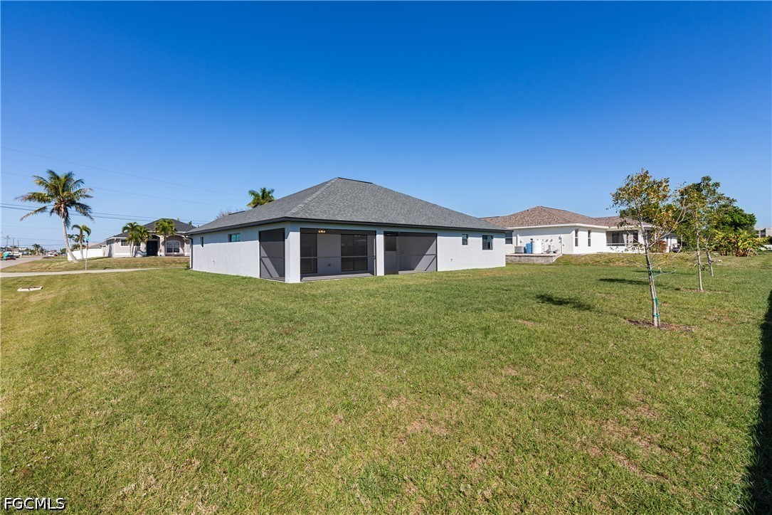 This gorgeous newer home, built in 2023, OUT OF FLOOD ZONE, is perfectly nestled in the heart of the city with city water and sewer already connected. Step inside and you’ll immediately appreciate the wide-open floor plan and abundance of upgrades throughout. The spacious living area flows beautifully into the large dining space and oversized island, making it perfect for busy mornings or entertaining friends and family. The open kitchen features stainless steel appliances, granite countertops, and plenty of workspace, allowing you to cook while staying connected with everyone in the home. Stunning oversized tile flooring runs throughout, creating a modern and cohesive look. Every larger-than-average bedroom includes its own walk-in closet—a rare feature in many new homes today—providing exceptional storage for family and guests. The primary suite is a true retreat with a tray ceiling and transom window that fills the room with natural light. The grand primary bathroom offers a spa-like experience with dual vanities, a luxurious soaking tub, and an impressive walk-around shower with dual showerheads. With double walk-in closets and an additional utility closet, the primary bath alone offers incredible storage space. Step outside to your extended screened-in lanai, the perfect place to enjoy a quiet morning coffee or relax in the evening with a drink while taking in the Florida breeze. The lanai is conveniently accessible from the primary bedroom, dining area, and guest bathroom, creating seamless indoor-outdoor living. Located in a highly desirable Cape Coral location, this home is close to two major airports, beautiful Gulf beaches, restaurants, shopping, parks, marinas, schools, and easy access to Fort Myers bridges. With its modern design, thoughtful upgrades, and prime location, this property is truly a must-see. *Potential tenants must pass background and credit check, as well as submit proof of income.