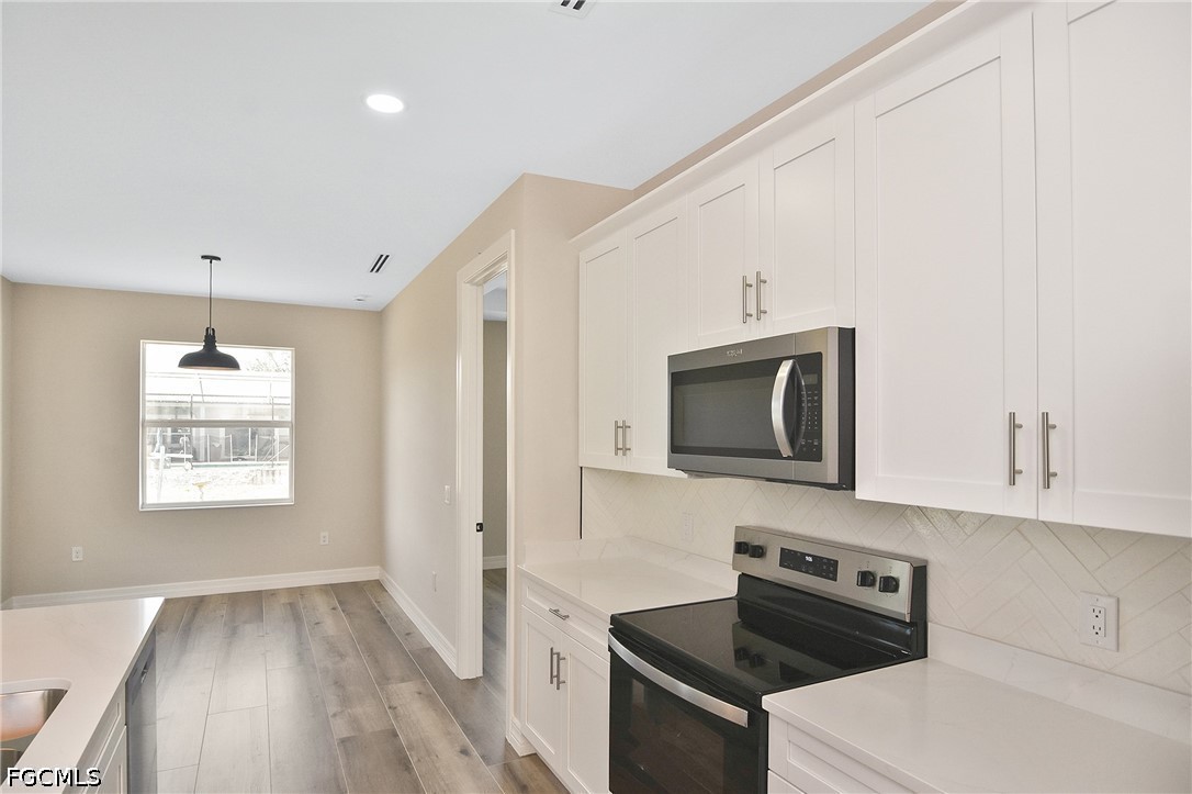 Come view this gorgeous brand-new 4 bed, 1,800 SF home with high ceilings & upgraded finishes. Luxurious showers are made for relaxation. Tray ceilings in living room & owner suite. Hardwood cabinets, energy efficient windows, granite countertops, 9"-wide wood look plank tile flooring throughout, paver driveway, impact front door, stainless steel appliances, ceiling fans throughout & ample closet space all make this home an ideal place for a family to call home. Several parks nearby. Short drive to shopping & restaurants.