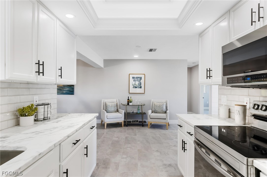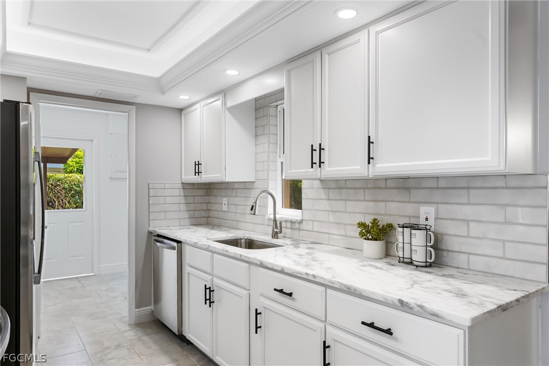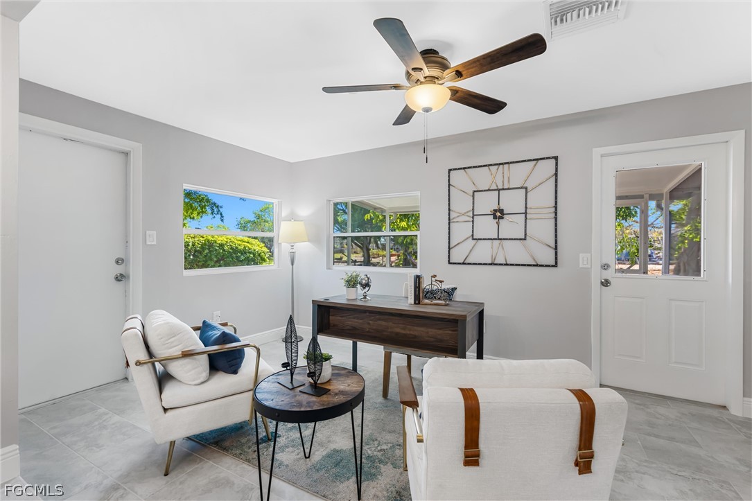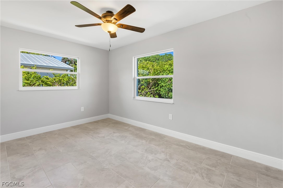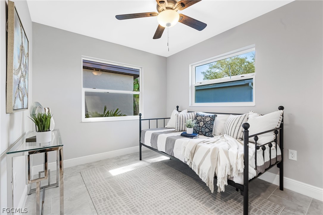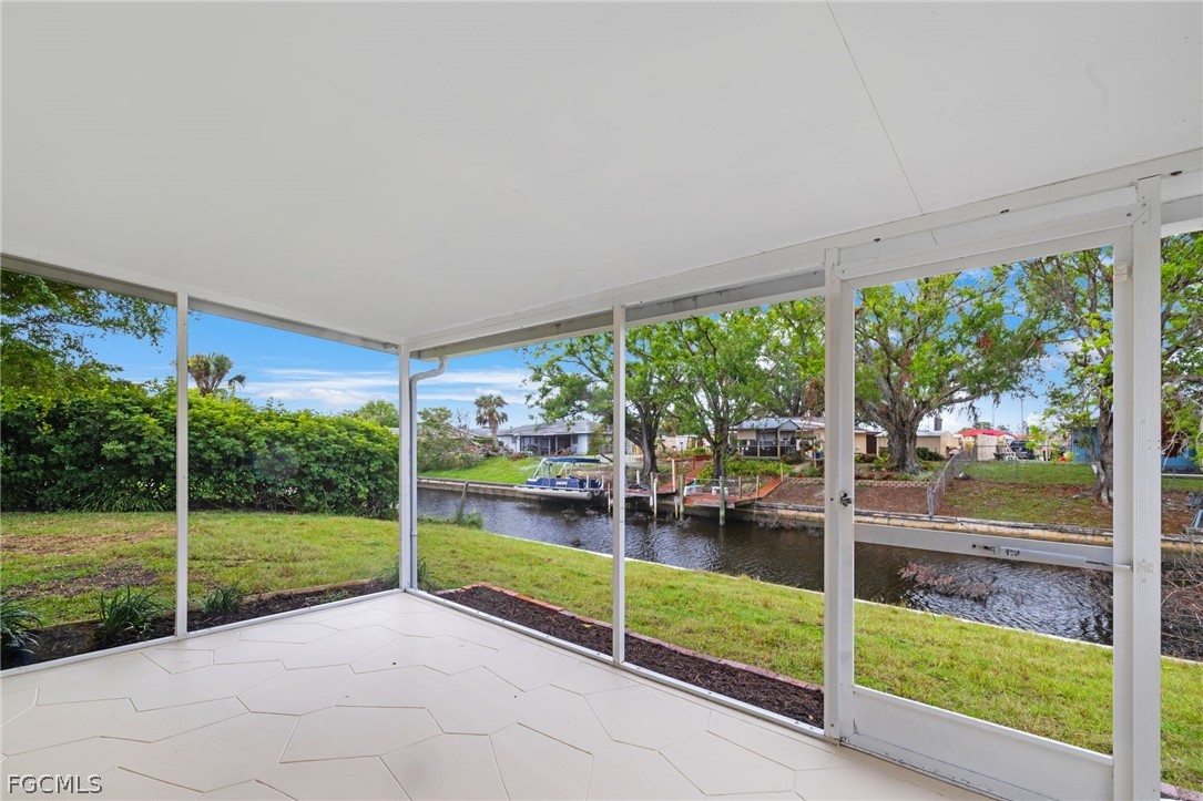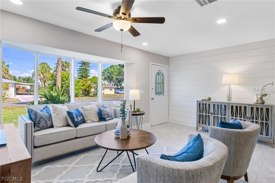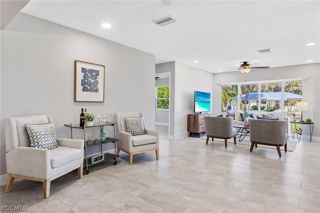 This renovated Gulf access waterfront home offers 4 bedrooms and is now available for lease after the previous tenant’s term just ended. Located on a quiet canal with a concrete seawall and western rear exposure, the property features a spacious backyard with a firepit area overlooking the water and quick boating access to the Caloosahatchee River in approximately 15 minutes. The home underwent an extensive renovation with major upgrades including updated windows, irrigation system, interior and exterior improvements, porcelain wood-plank tile flooring throughout, shiplap accent walls in the foyer and living area, updated baseboards, modern lighting, fans, fixtures, sinks, and faucets. The redesigned kitchen features white cabinetry with black hardware, quartzite countertops, subway tile backsplash, stainless steel appliances, and a custom tray ceiling with LED accent lighting. Both bathrooms were upgraded with shaker-style vanities and designer-tiled showers, with a tub included in the guest bath. Additional improvements include updated interior doors, electrical outlets, and numerous finish upgrades throughout. The interior has just been freshly repainted in a clean white tone creating a bright, modern feel. Conveniently located within walking distance to North Fort Myers High School, less than 10 minutes to Historic Downtown Fort Myers, about 5 minutes to Cape Coral, and offering easy boating access to the river. The home is not located in a flood zone and has never taken water.