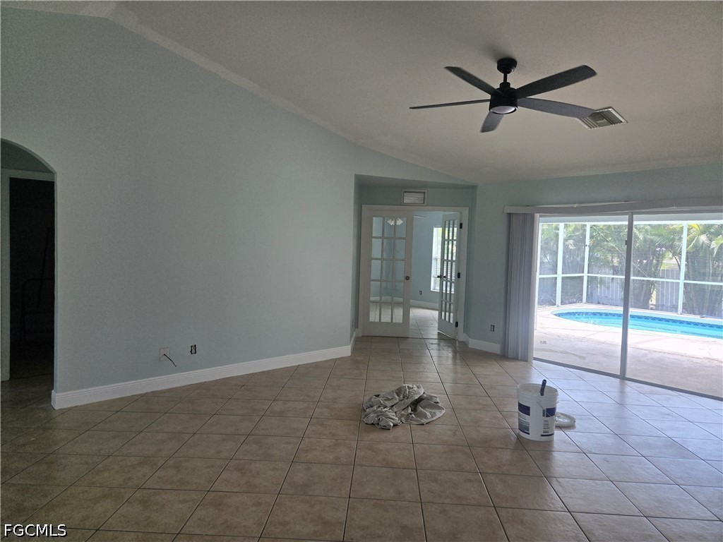 Beautifully tiled throughout (no carpet) 3 bed, plus den, 2 full bath, 2 car garage and a pool available for rent in Northeast Cape Coral. Very convenient location -- close to Del Prado and Route 41. All appliances included. Landlord will take care of lawn and professionally service the water equipment. Tenant responsible for upkeep of the pool and equipment. All applicants 18 and over must be able to pass a background check. Available for rent by the end of April. Realtor is the owner. Yard is partially fenced.