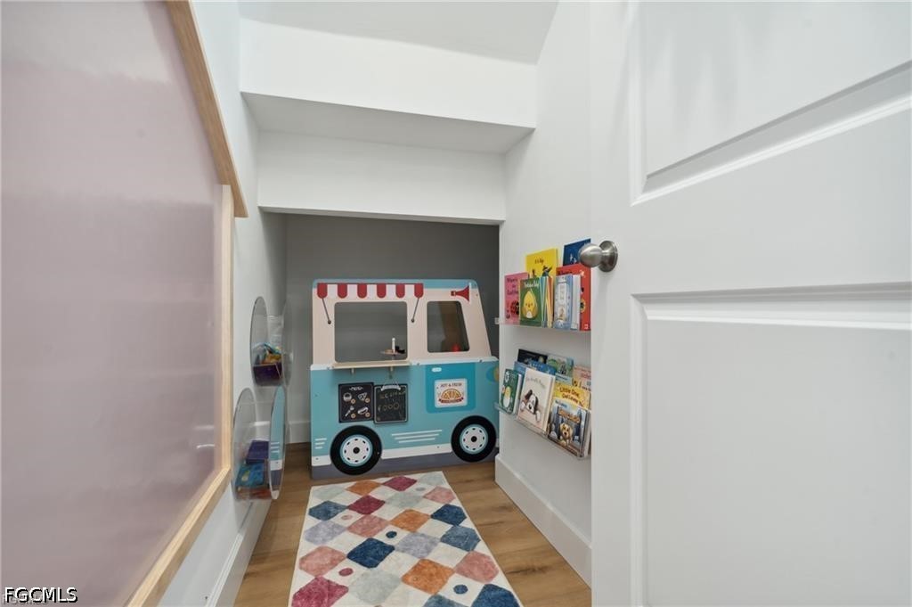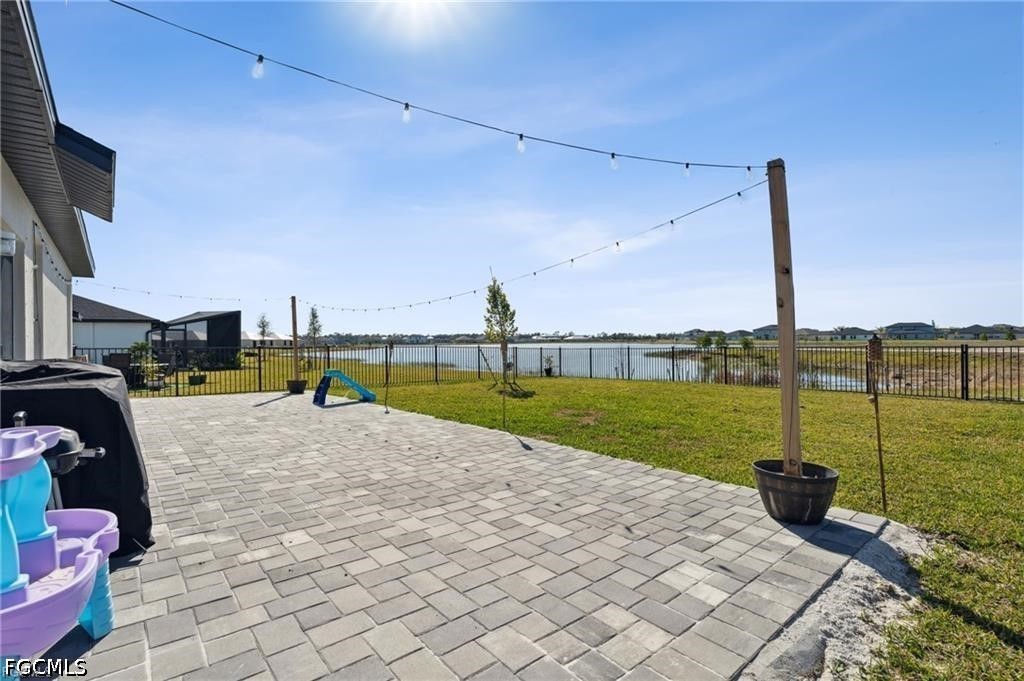 Welcome to this beautifully upgraded home, offering over 2,900 square feet of spacious living and TONS OF UPGRADES. Located in the sought-after community of Crane Landing, this home perfectly blends modern luxury with everyday practicality, making it the ideal retreat for families and entertainers alike. The expansive 40 x 15 paver patio and lake views create the perfect outdoor oasis, ideal for relaxing or hosting gatherings with friends and family. Inside, the home boasts upgraded luxury vinyl plank flooring throughout, paired with sleek 5 1/4" baseboards. The open-concept design flows effortlessly from the living room to the kitchen, where you'll find modern touches with quartz countertops, stainless steel appliances, upgraded sink, faucet, and backsplash. The spacious living area is enhanced by a built-in entertainment center, perfect for cozy family nights or entertaining guests in style. With 5 spacious bedrooms plus a den AND loft, there’s plenty of room for everyone to live, work and play. The expansive layout provides endless possibilities for personalization, whether you need a home office, gym, or playroom. Other additions include the custom laundry room system and epoxy-coated garage floors, adding style to functionality. Conveniently located just off of US-41, minutes to dining, shopping and entertainment, paired with a LOW HOA, don’t miss out on this opportunity!
