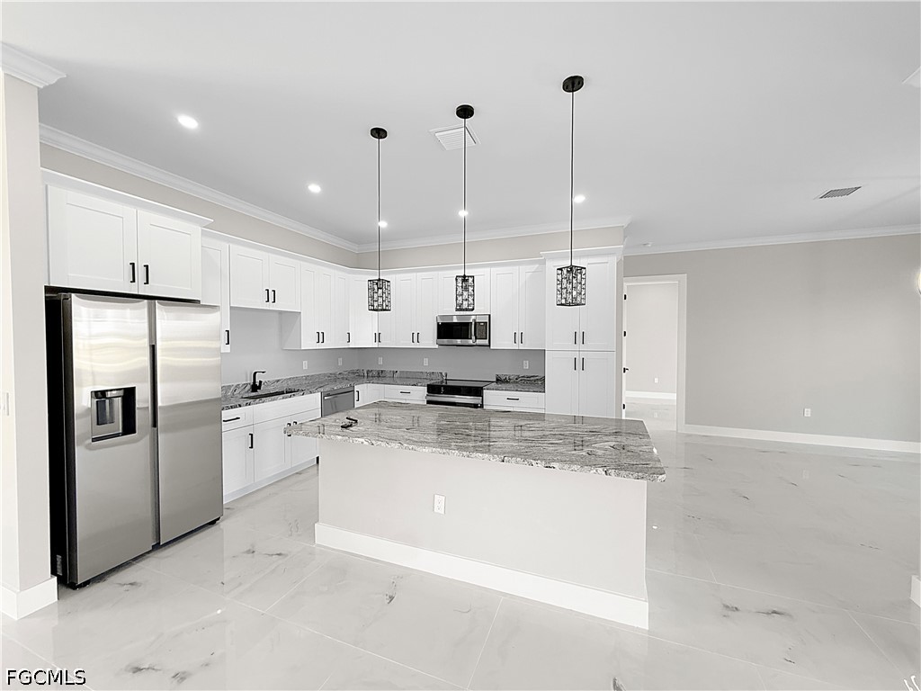 Be the first to live in this brand-new construction home located at 303 NW 26th Ave in Cape Coral. This 3-bedroom, 3-bathroom residence features a modern open-concept floor plan with high ceilings and oversized doors, creating a bright and spacious interior.