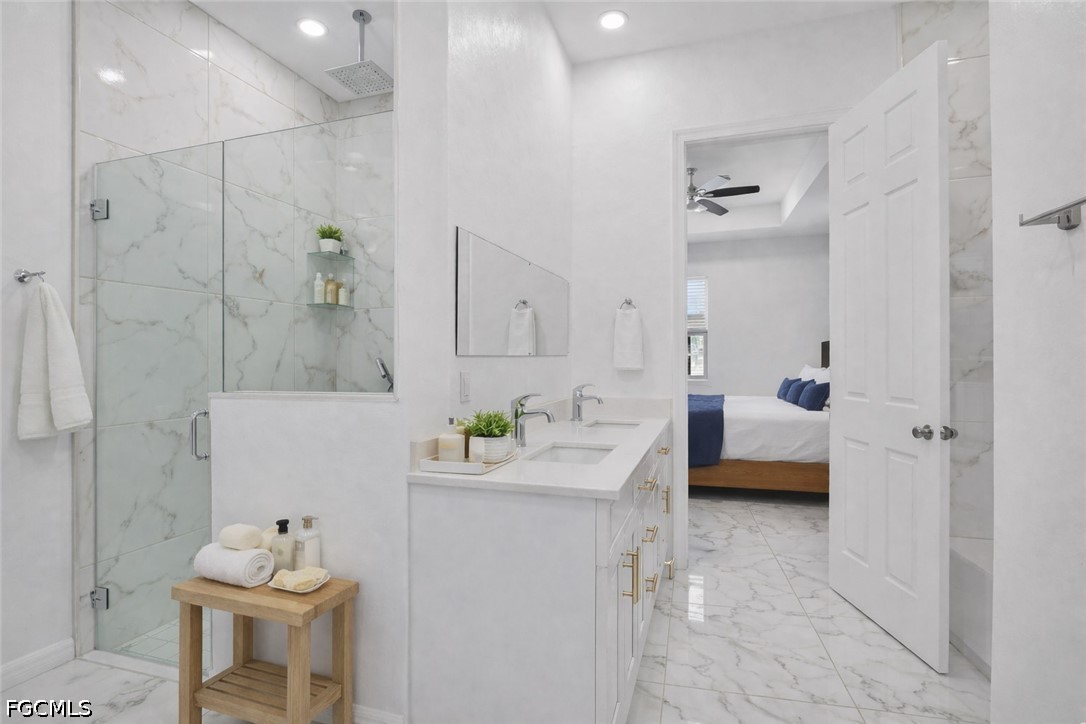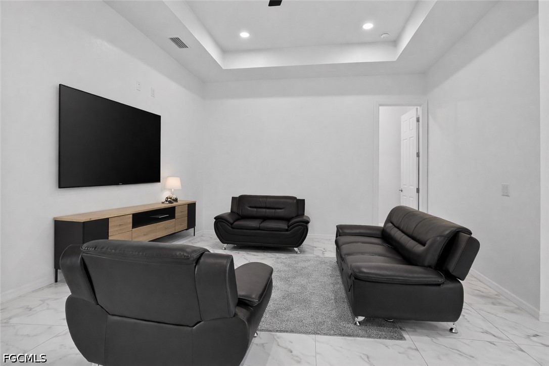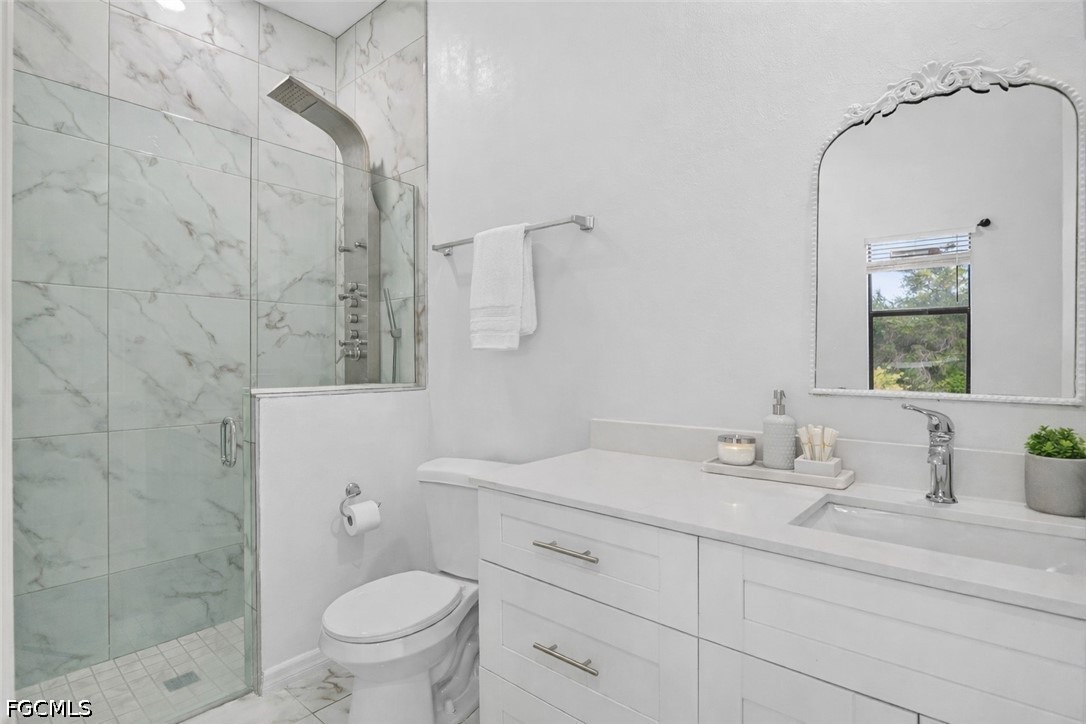 Built in 2024, this newer construction home is located on a spacious corner lot in Lehigh Acres and offers a modern, flexible layout. Featuring 4 bedrooms and 3 bathrooms, including multiple en-suite style bedrooms, this home provides ideal separation for guests or extended living. Bright open-concept design with high ceilings, tile flooring throughout, and abundant natural light. The kitchen includes a large island, quartz countertops, modern cabinetry, and stainless steel appliances. Primary suite features a spacious bath with upgraded finishes. Additional highlights include impact windows and doors, covered rear patio, 2-car garage, and dual driveways with ample parking for multiple vehicles. No HOA. Conveniently located near major roads, shopping, dining, and schools.