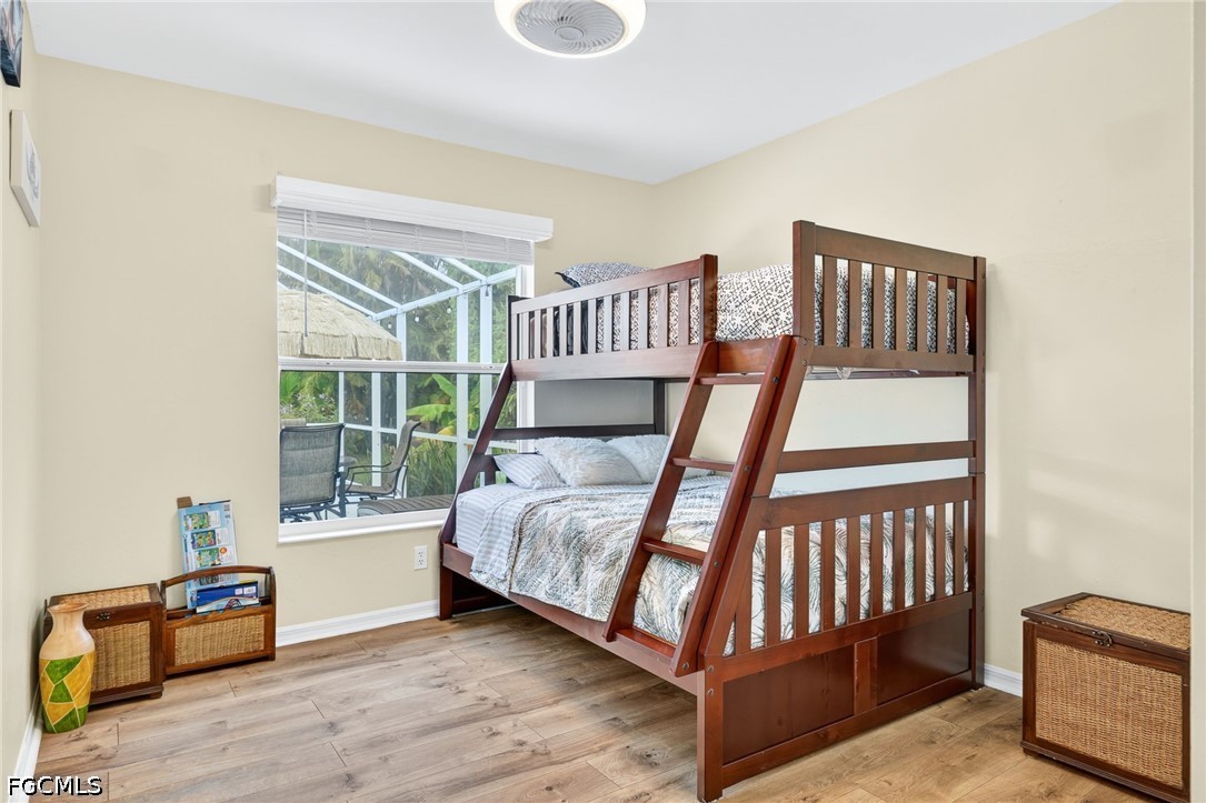 The generously sized primary suite offers a peaceful retreat, complete with abundant natural light, a private ensuite bathroom, and direct access to the pool area perfect for enjoying morning coffee or evening swims.